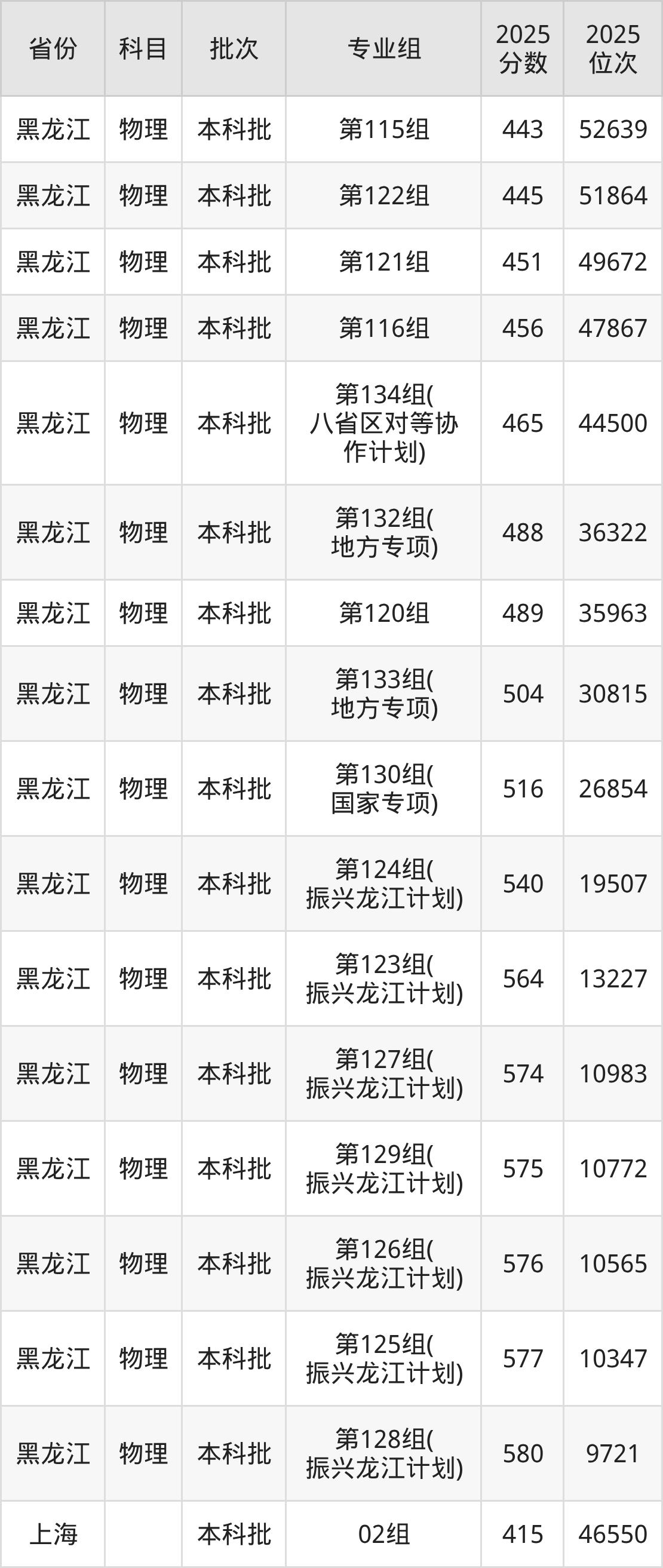 哈尔滨师范大学第134组(八省区对等协作计划):2025年投档录取最低分为465分,录取最低位次为44500名。