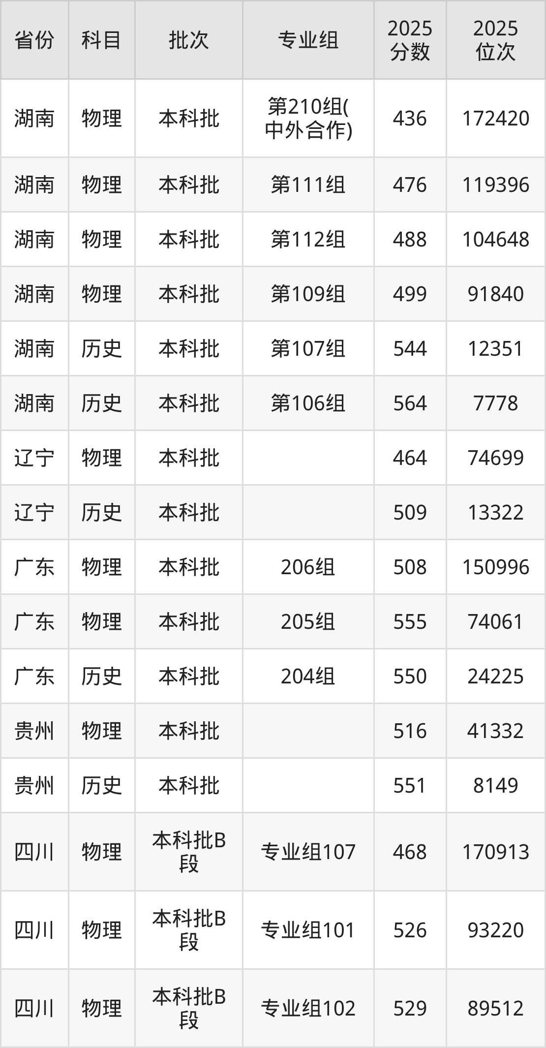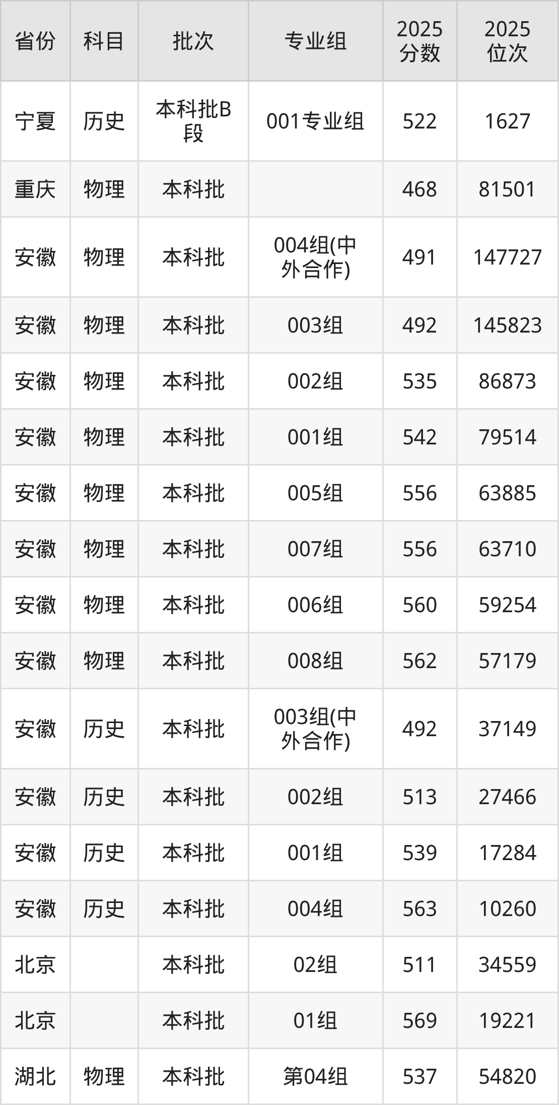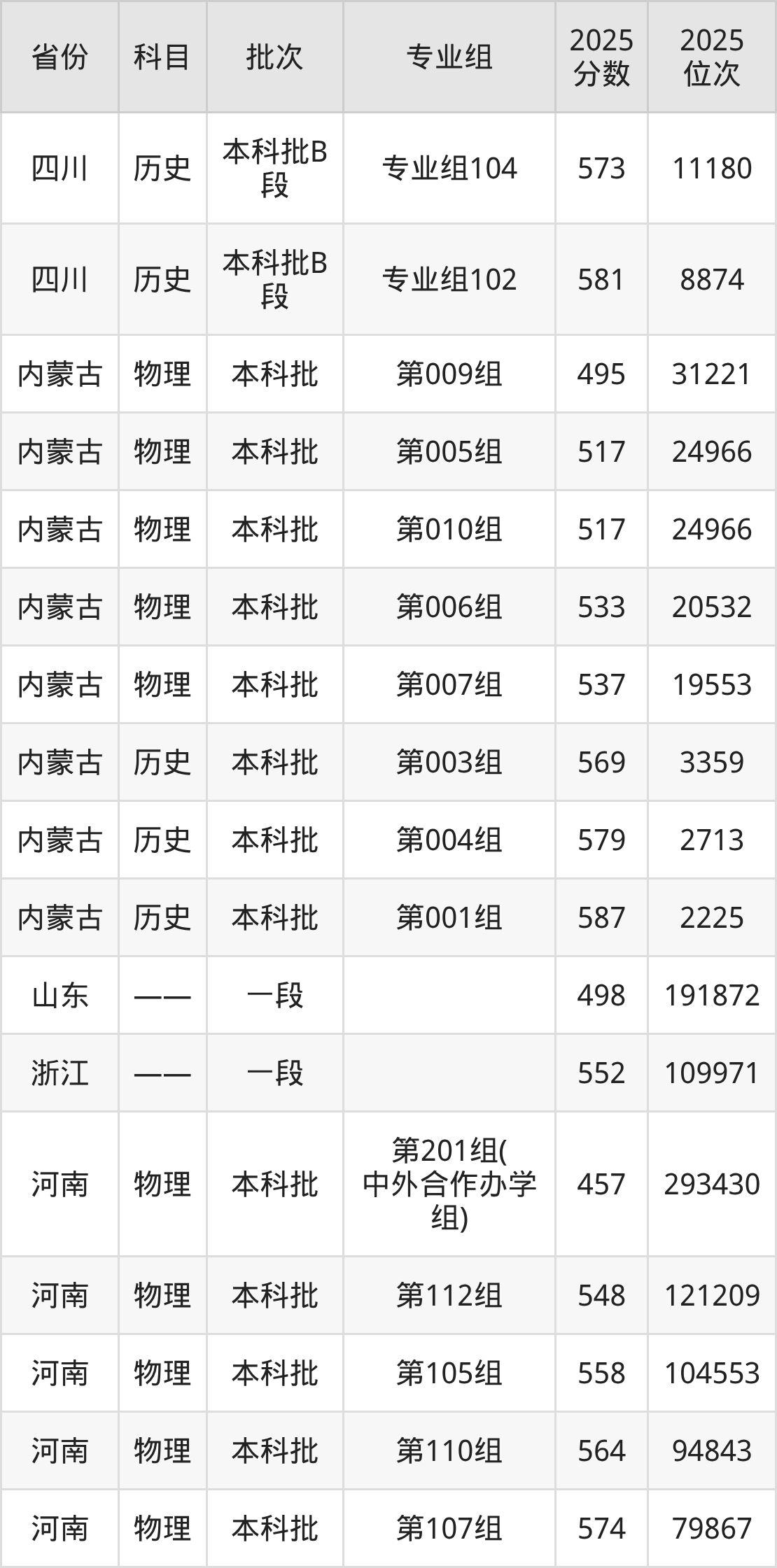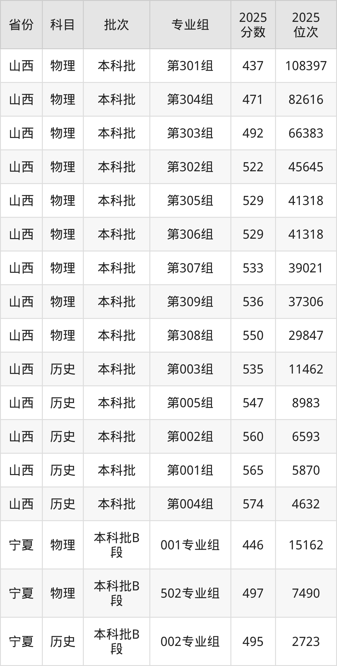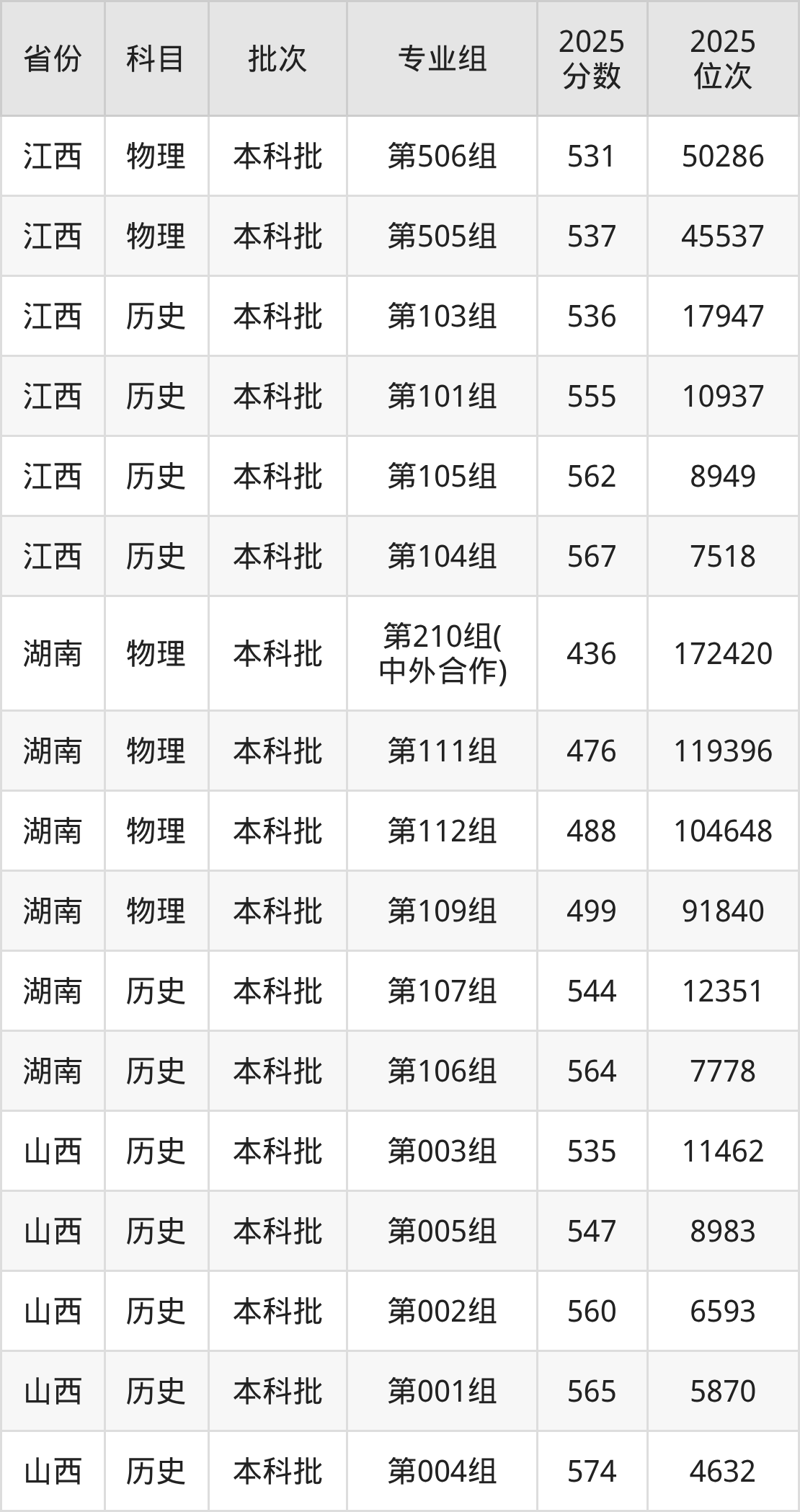 2025年在本科物理类进行招生,各专业组分数线详情如下: