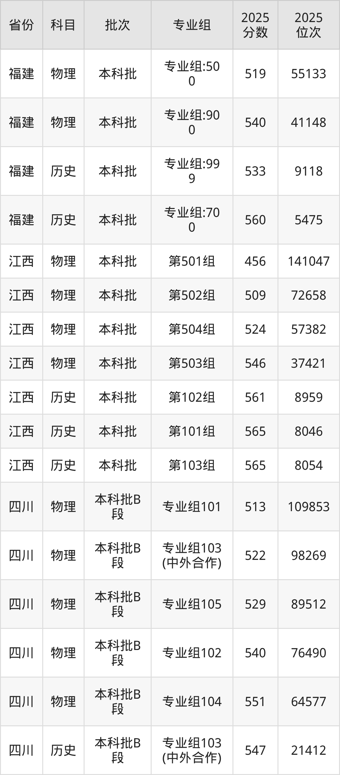 普通类本科物理类最低474分,本科历史类最低519分