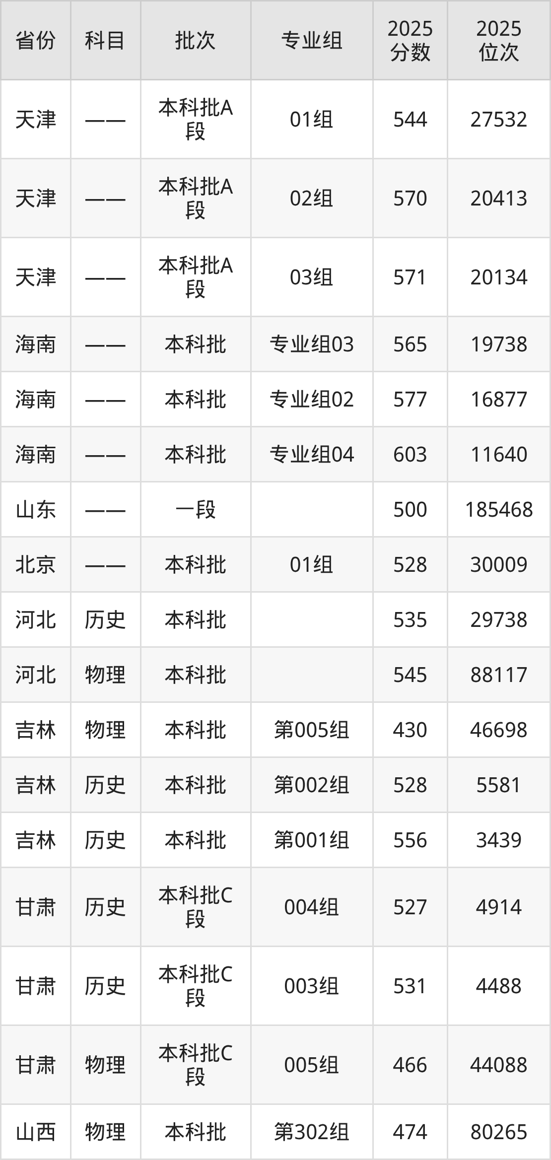 2025年投档录取最低分为545分,录取最低位次为88117名。