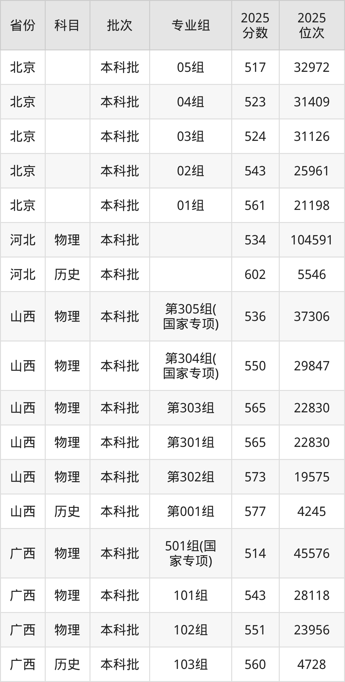 北京工商大学第305组(国家专项计划):2025年投档录取最低分为536分,录取最低位次为37306名。