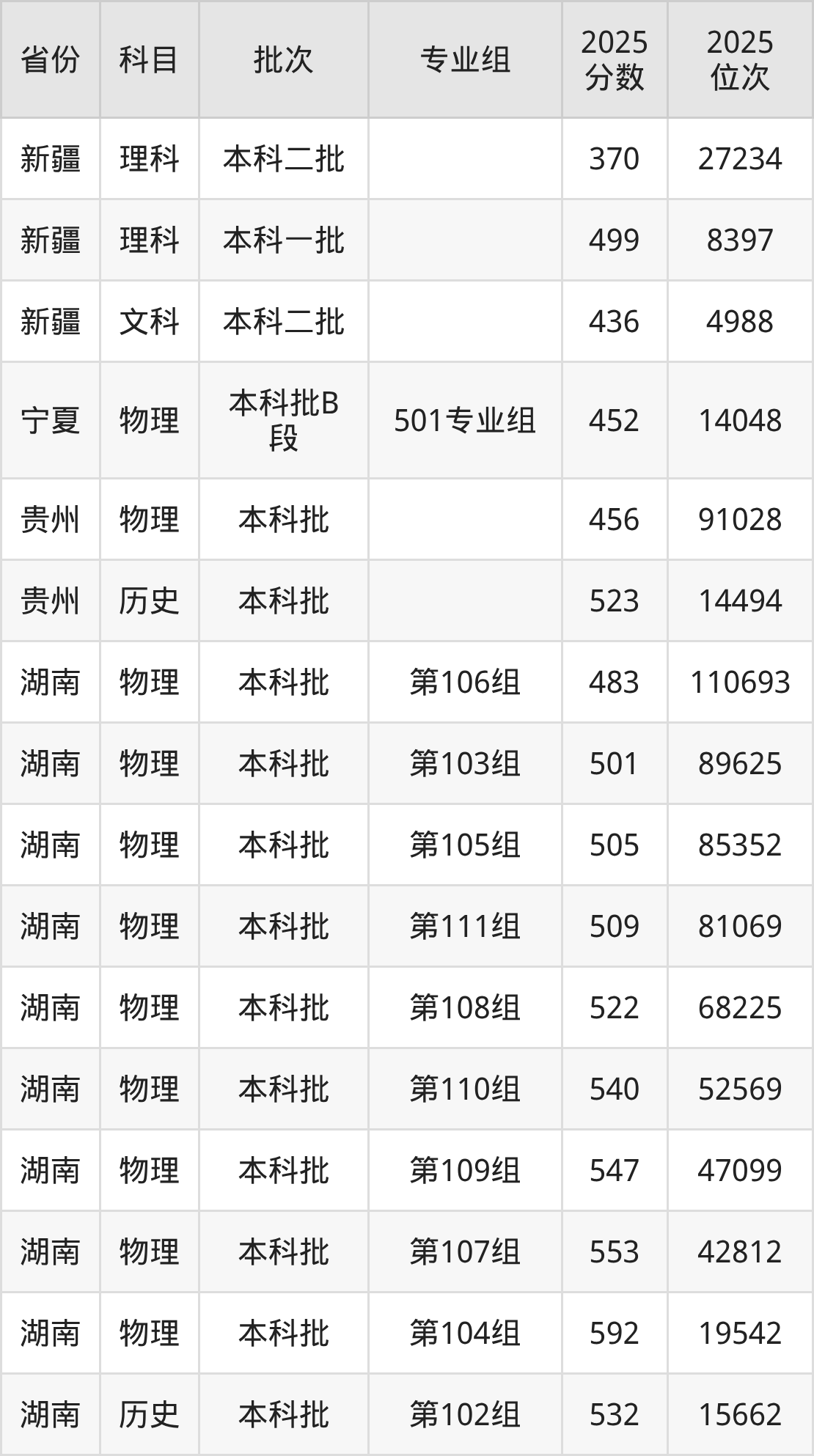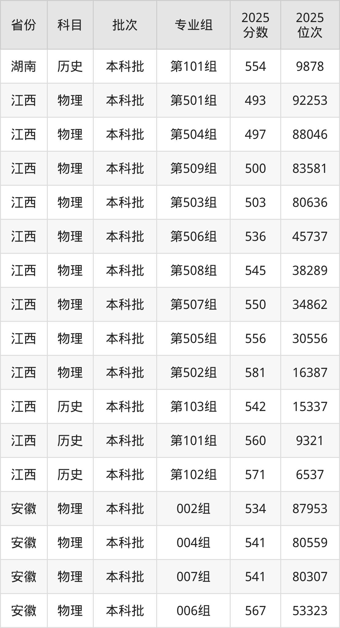 普通类本科物理类最低493分,本科历史类最低542分