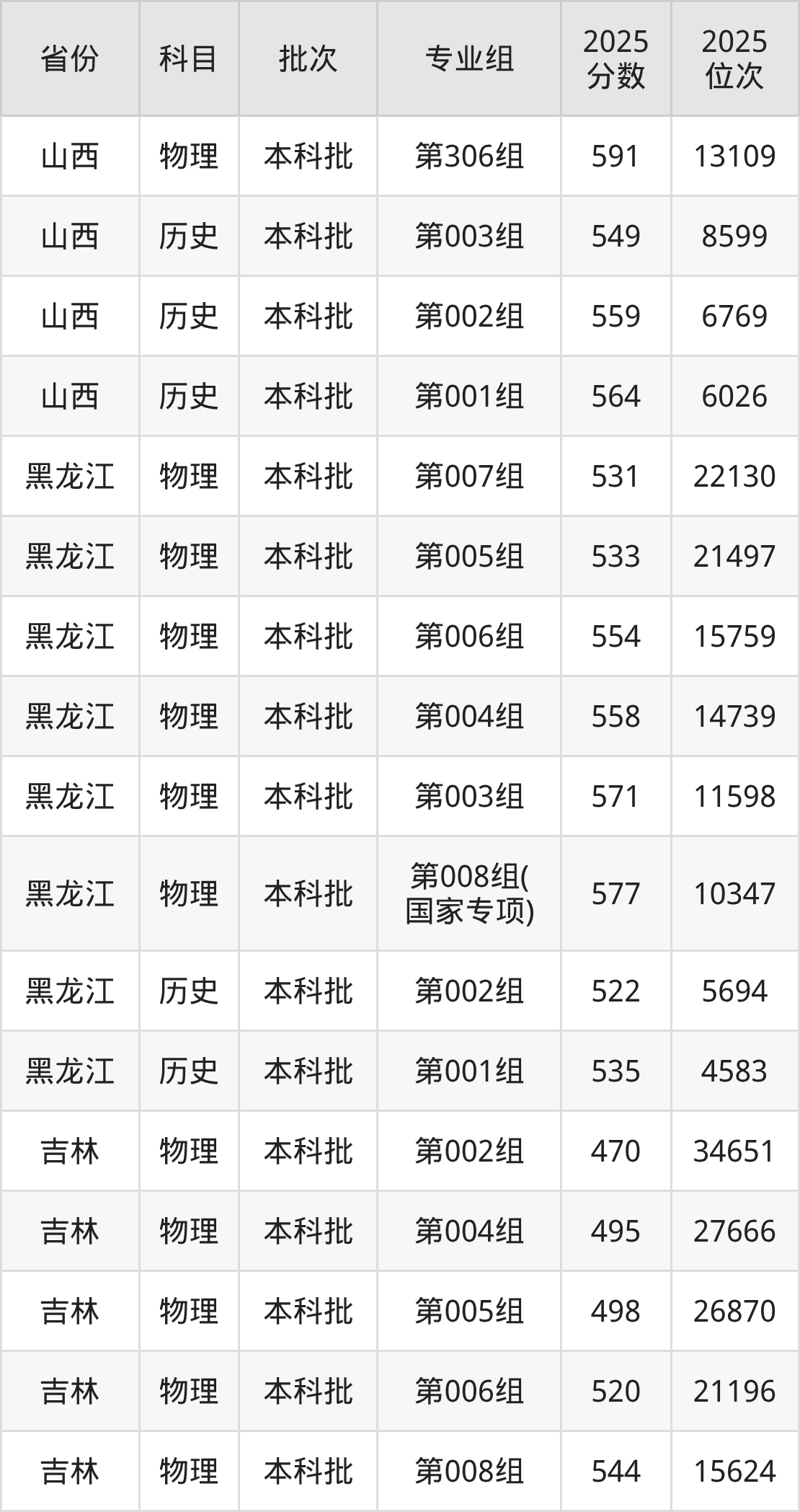 哈尔滨医科大学第008组(国家专项):2025年投档录取最低分为577分,录取最低位次为10347名。