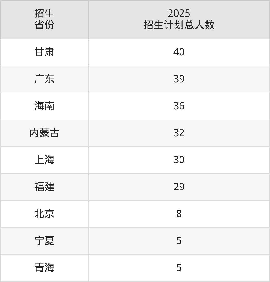 2025年哈尔滨医科大学面向全国29个省市开展本科招生;招生专业共30个,招生人数共2577人。2025年在黑龙江省招生计划总人数是642人,其中,哈尔滨医科大学在黑龙江省招生人数最多的是临床医学。哈尔滨医科大学在各省具体招生人数情况如下表。