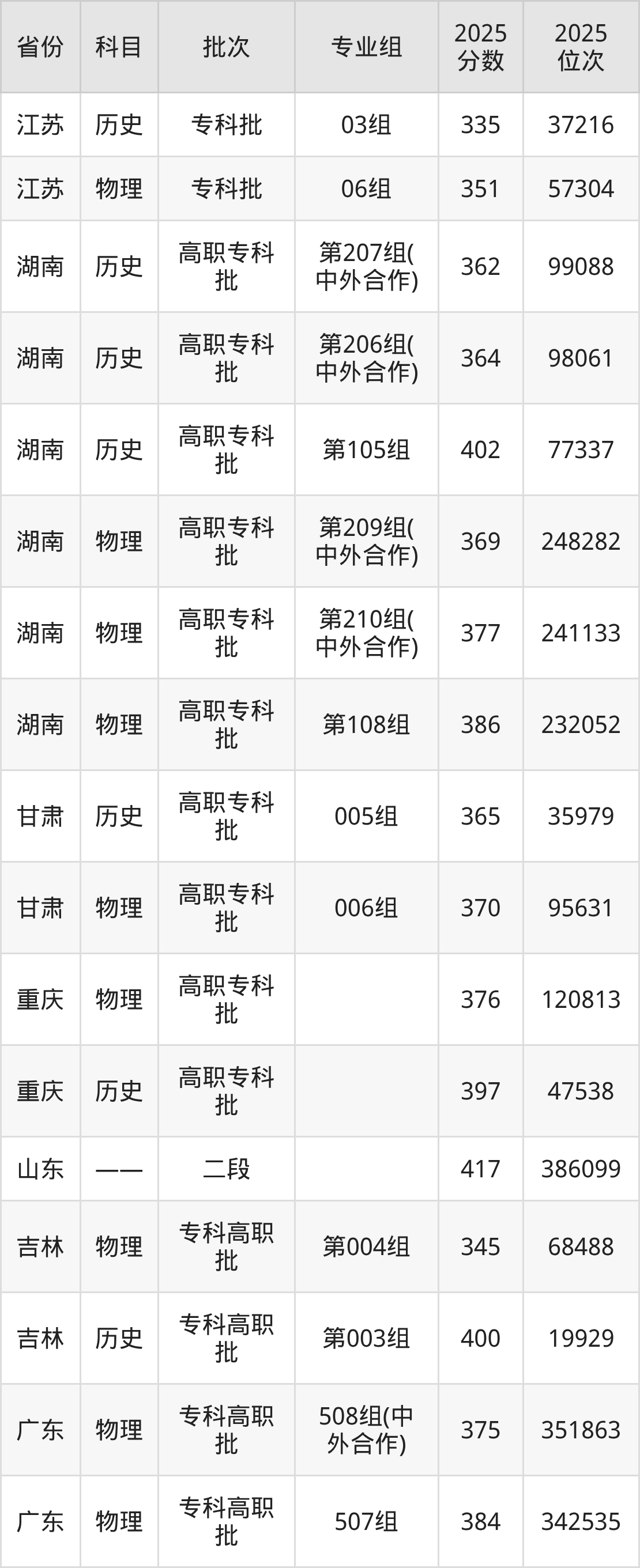 湖北交通职业技术学院第210组(中外合作办学或国际项目):2025年投档录取最低分为377分,录取最低位次为241133名。