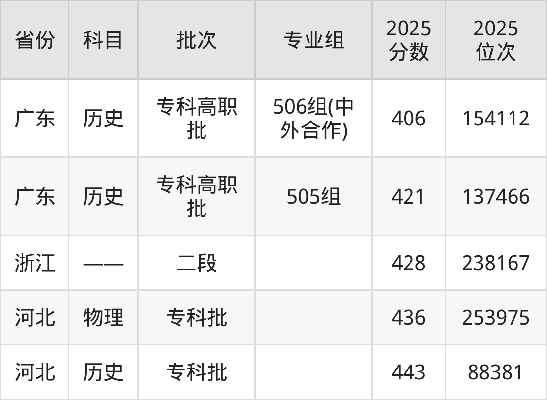 湖北交通职业技术学院506组(中外合作):2025年投档录取最低分为406分,录取最低位次为154112名。