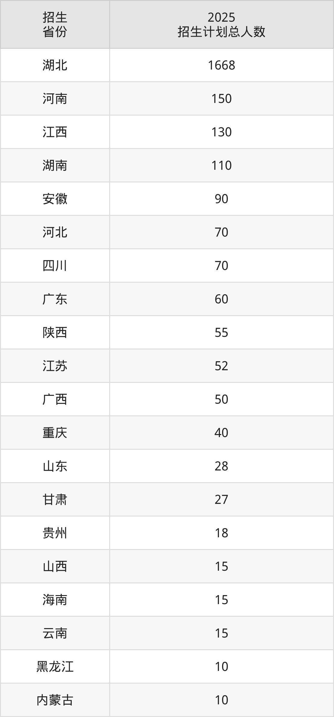 2025年湖北交通职业技术学院面向全国26个省市开展专科招生;招生专业共30个,招生人数共2712人。2025年在湖北省招生计划总人数是1668人,其中,湖北交通职业技术学院在湖北省招生人数最多的是智能建造技术。湖北交通职业技术学院在各省具体招生人数情况如下表。