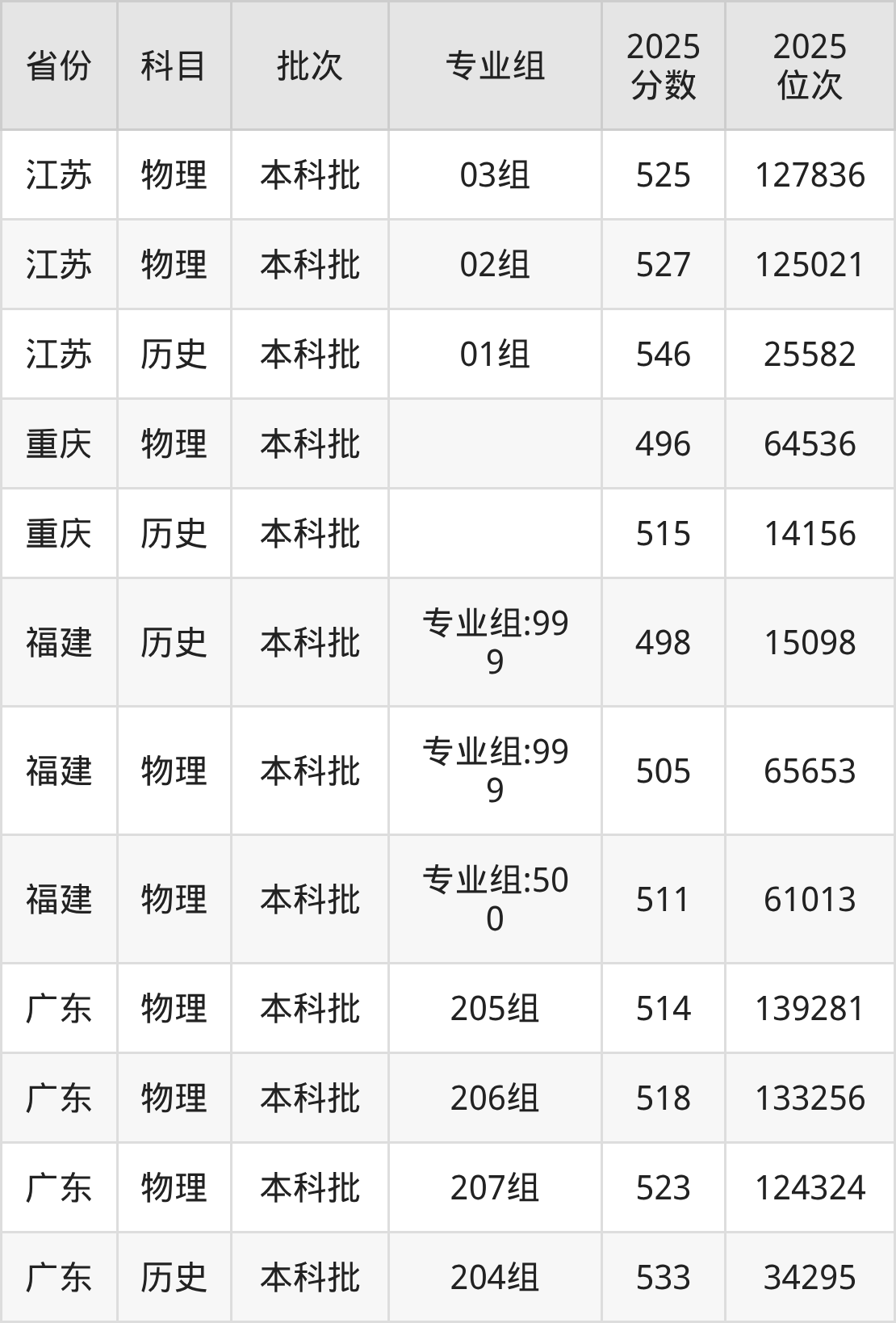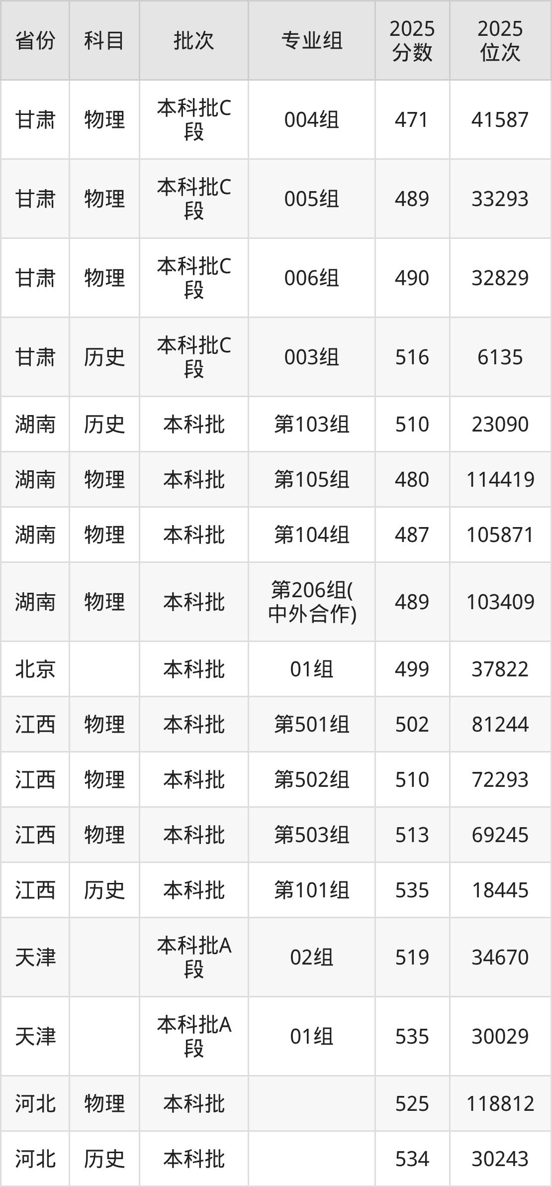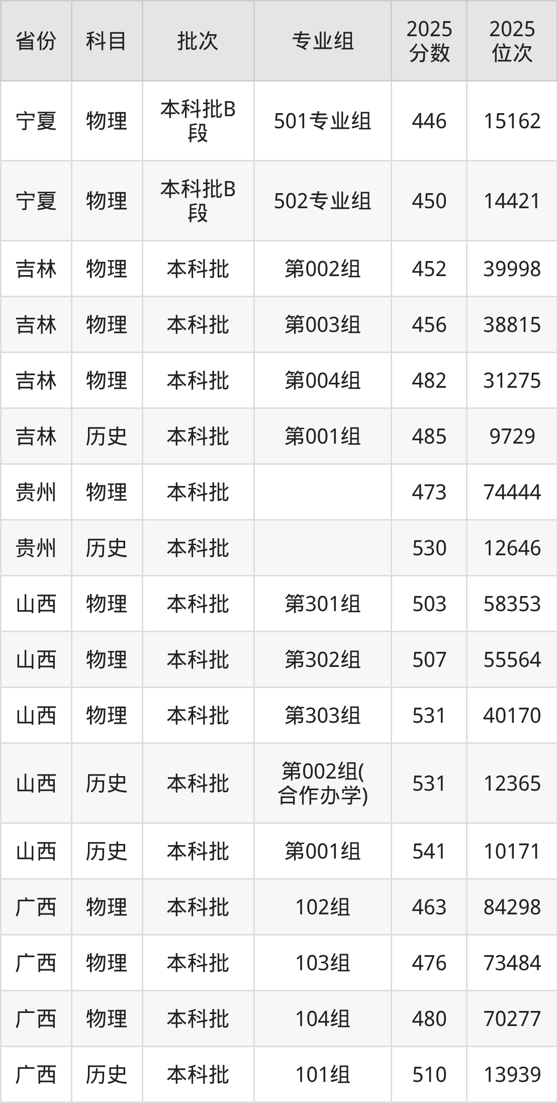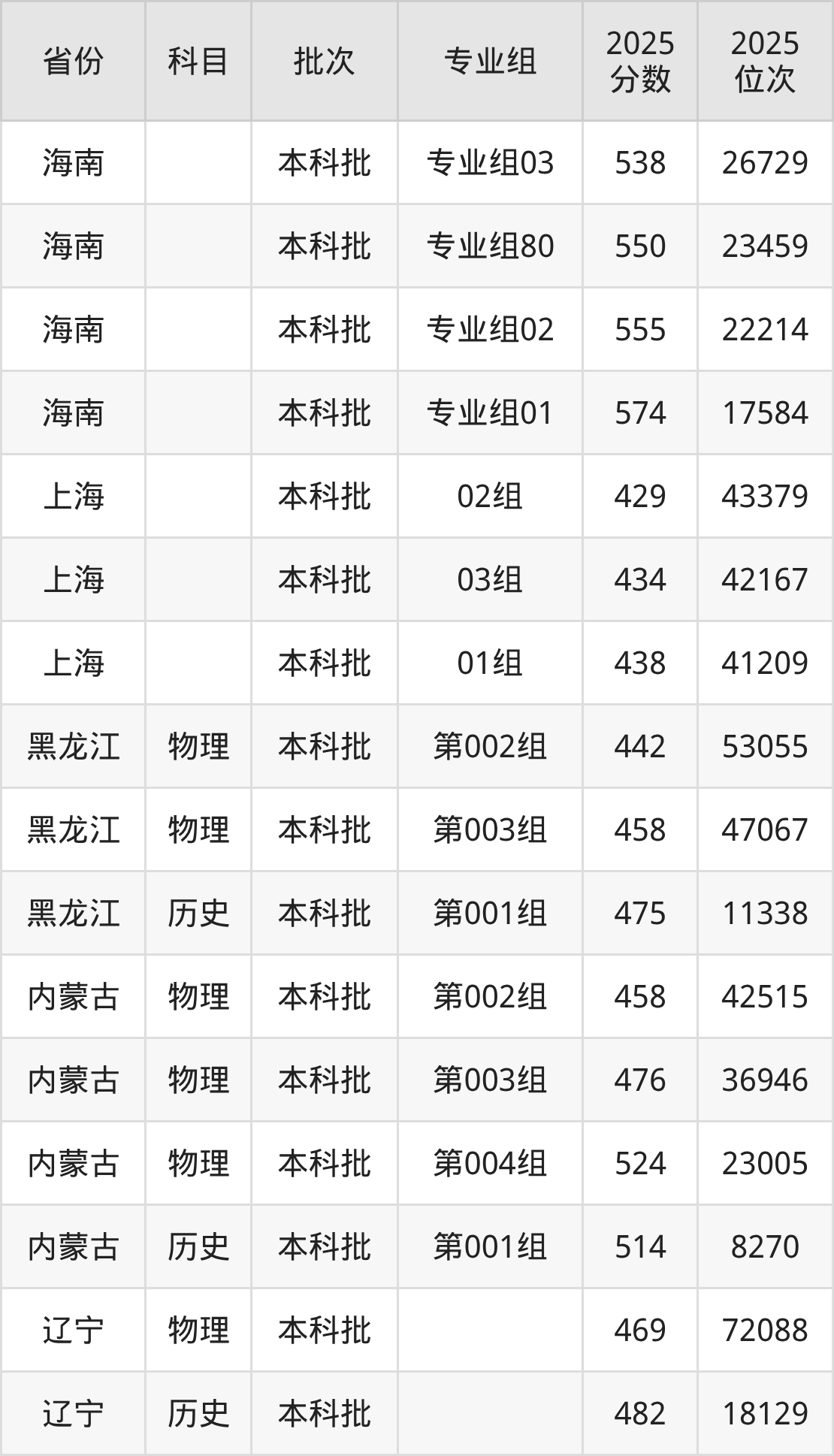 2025年投档录取最低分为515分,录取最低位次为14156名。