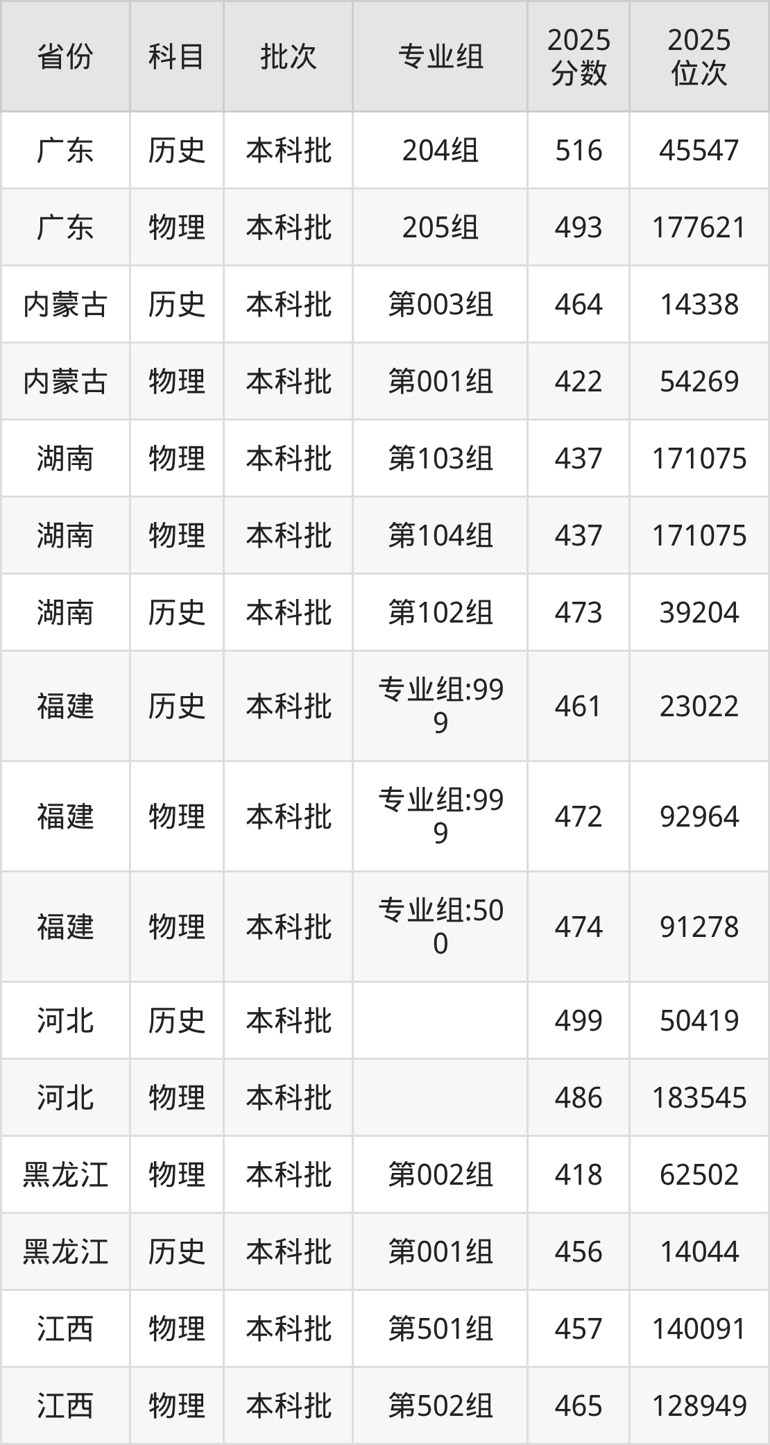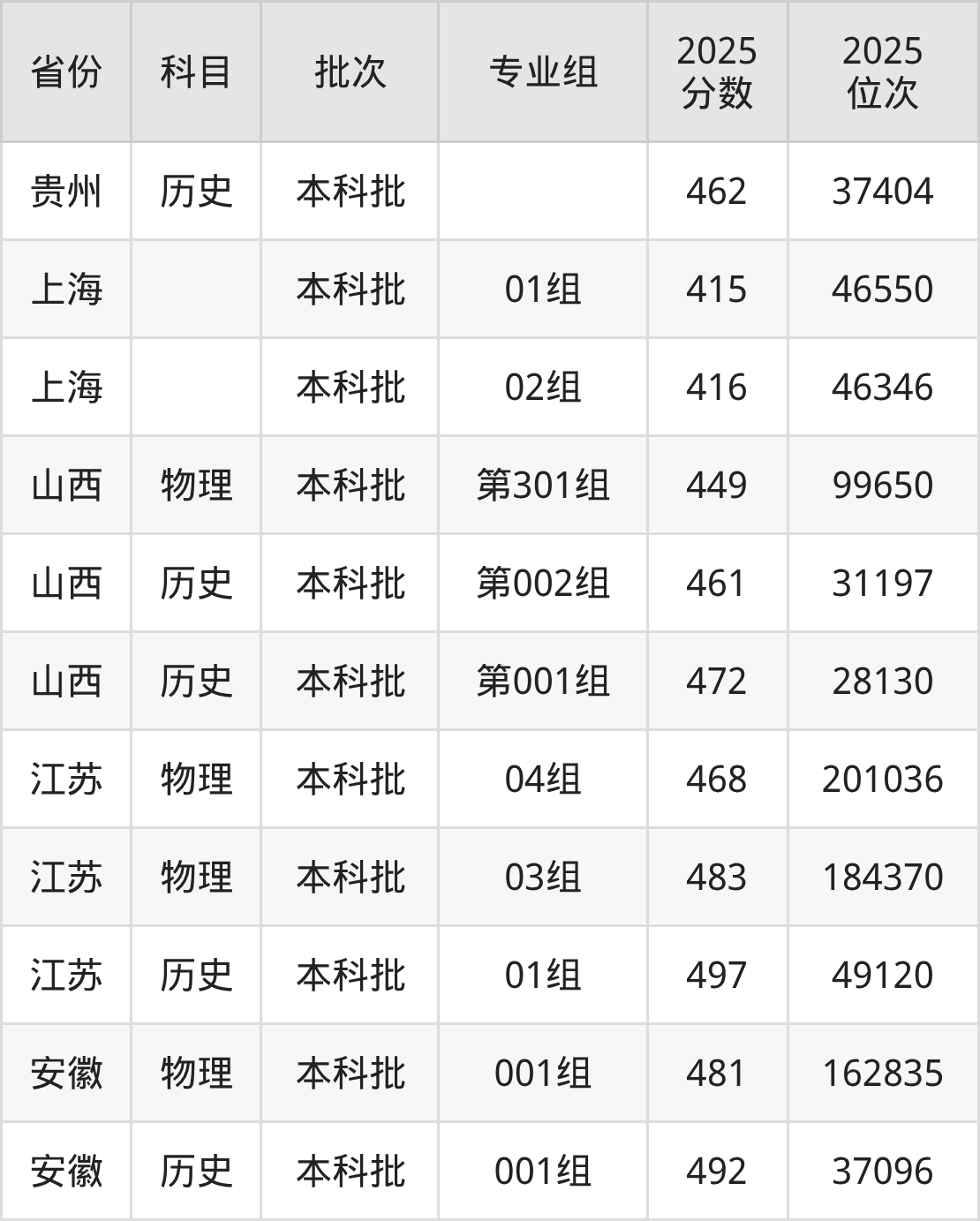 2025年投档录取最低分为462分,录取最低位次为37404名。