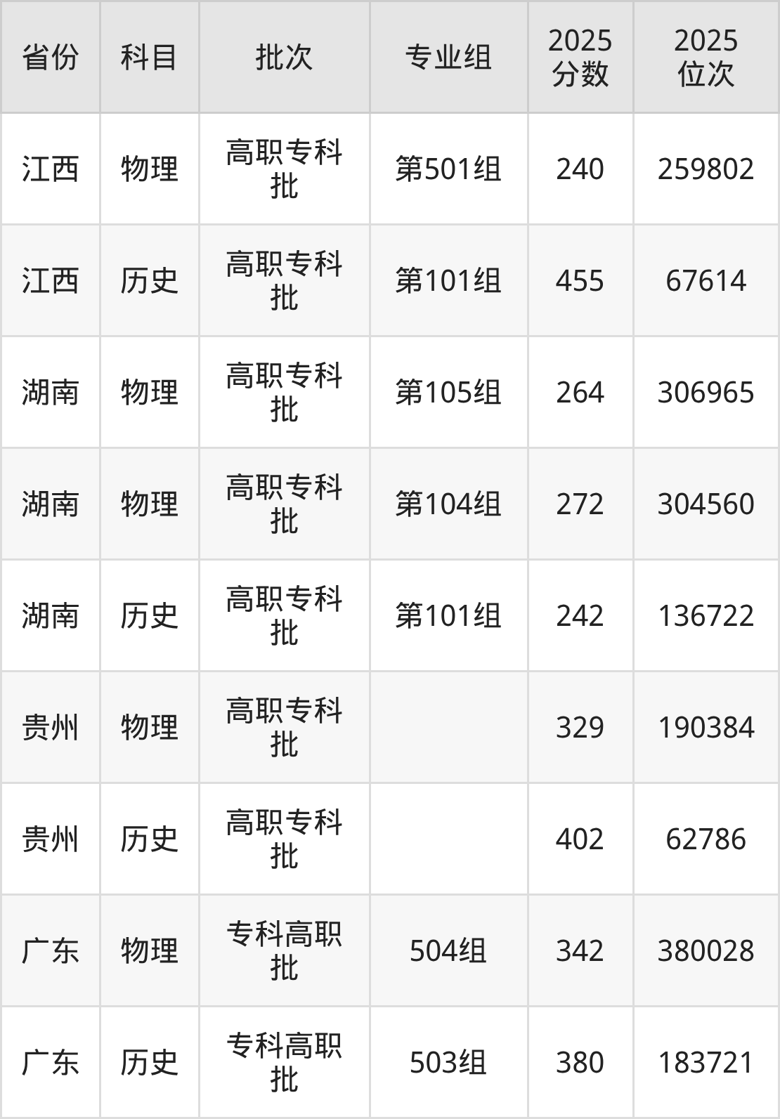 2025年投档录取最低分为329分,录取最低位次为190384名。