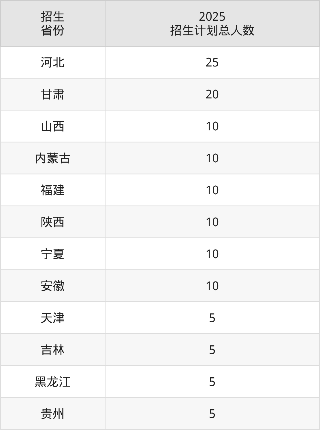 2025年山东司法警官职业学院面向全国12个省市开展专科招生;招生专业共2个,招生人数共125人。山东司法警官职业学院在各省具体招生人数情况如下表。