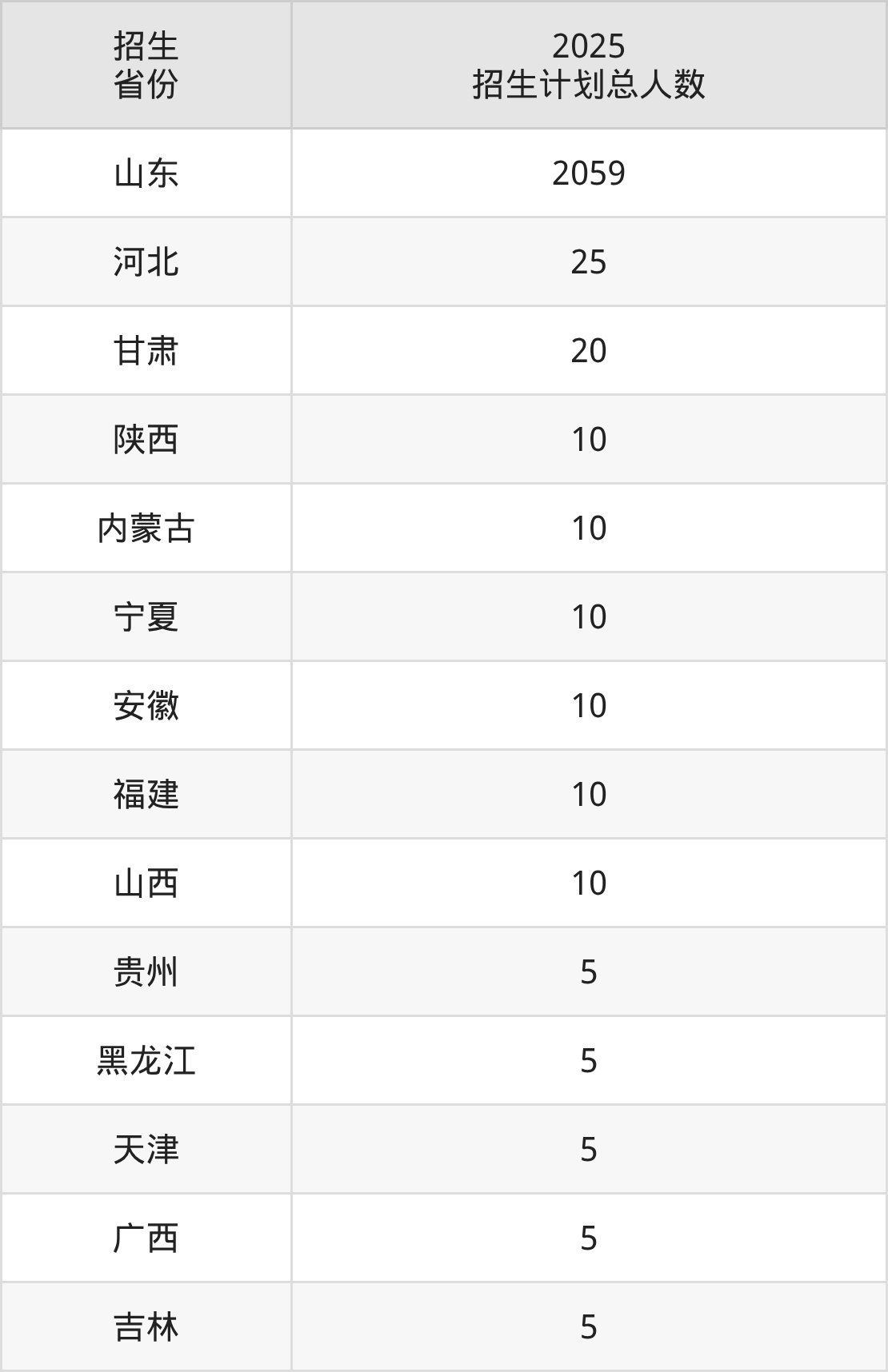 2025年山东司法警官职业学院面向全国14个省市开展专科招生;招生专业共17个,招生人数共2189人。2025年在山东省招生计划总人数是2059人,其中,山东司法警官职业学院在山东省招生人数最多的是司法警务。山东司法警官职业学院在各省具体招生人数情况如下表。