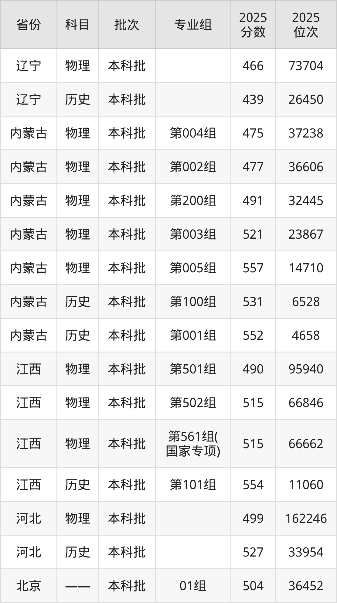 普通类本科物理类最低421分,本科历史类最低466分