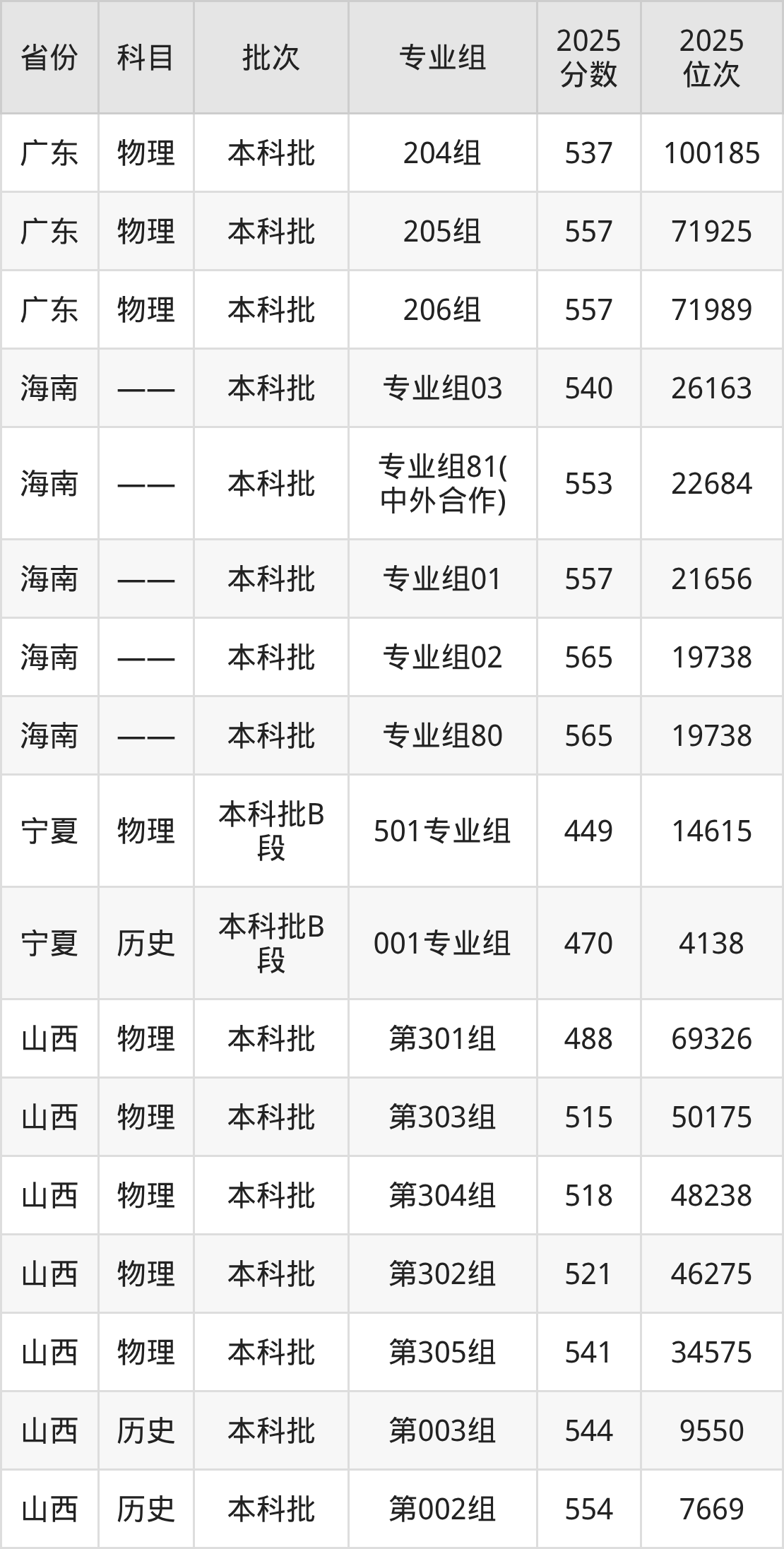 普通类本科物理类最低449分,本科历史类最低470分