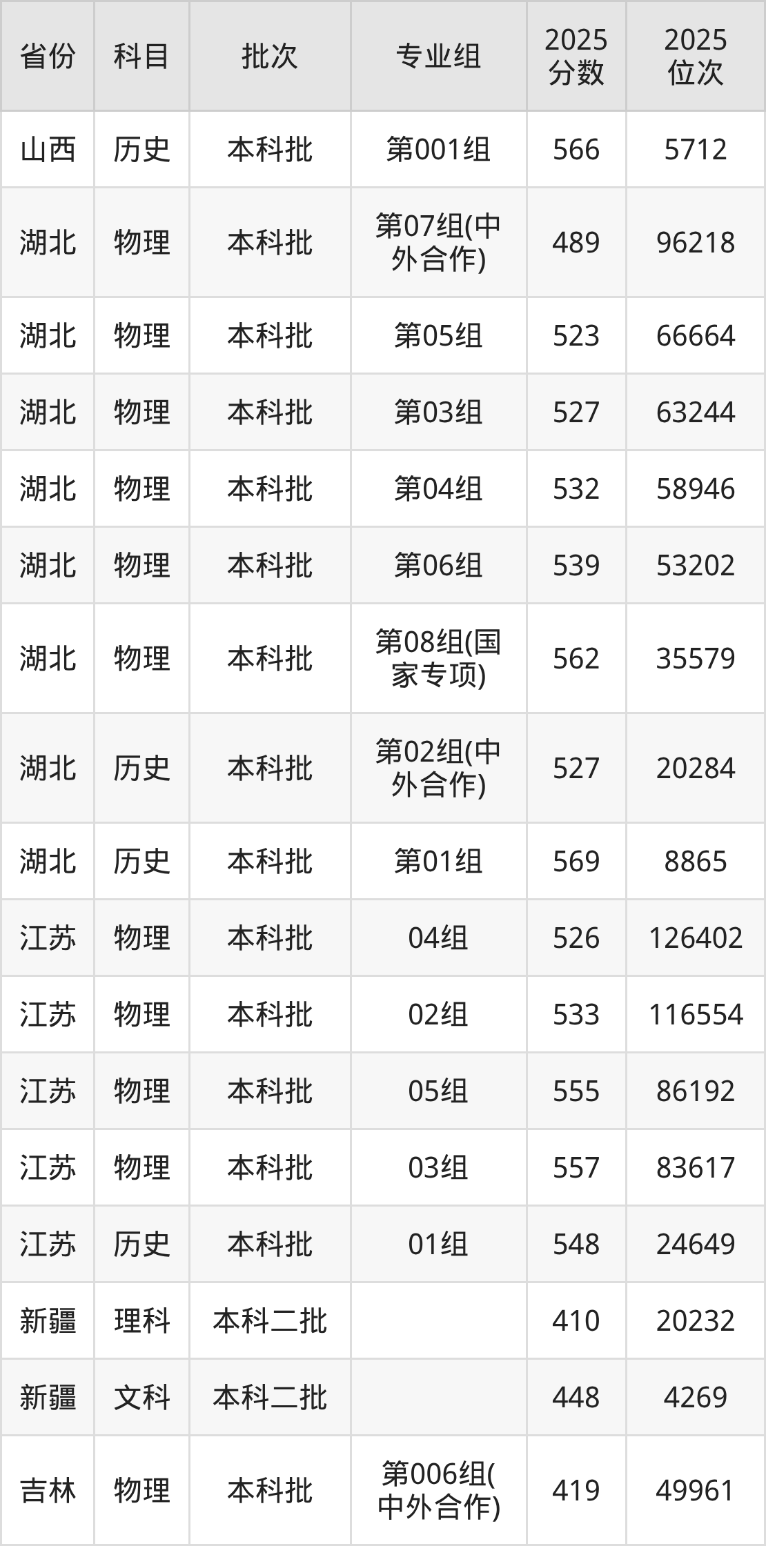普通类本科物理类最低489分,本科历史类最低527分