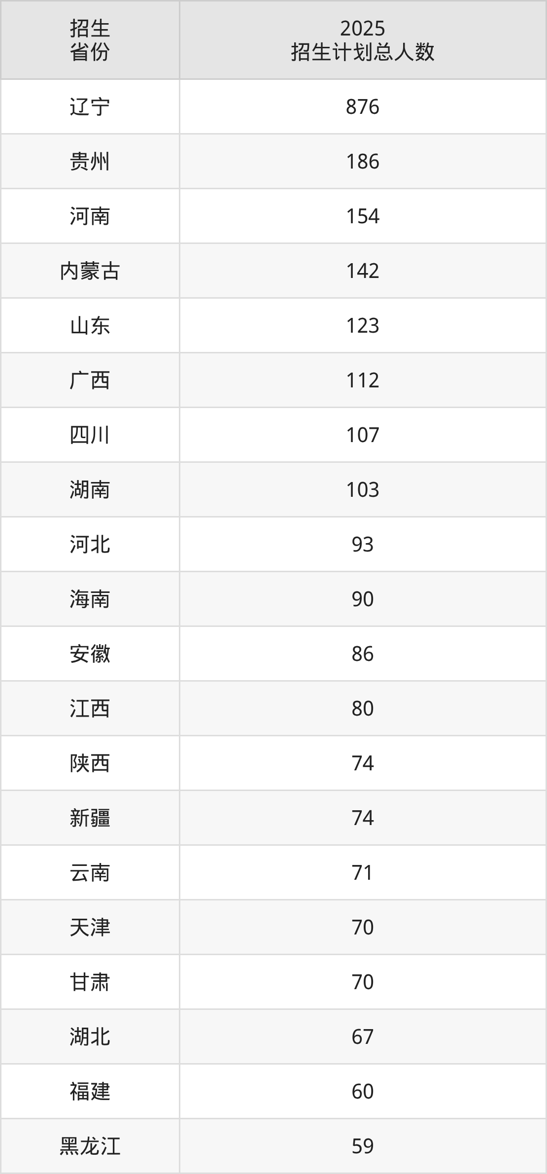 2025年大连大学面向全国29个省市开展本科招生;招生专业共43个,招生人数共2924人。2025年在辽宁省招生计划总人数是876人,其中,大连大学在辽宁省招生人数最多的是法学。大连大学在各省具体招生人数情况如下表。