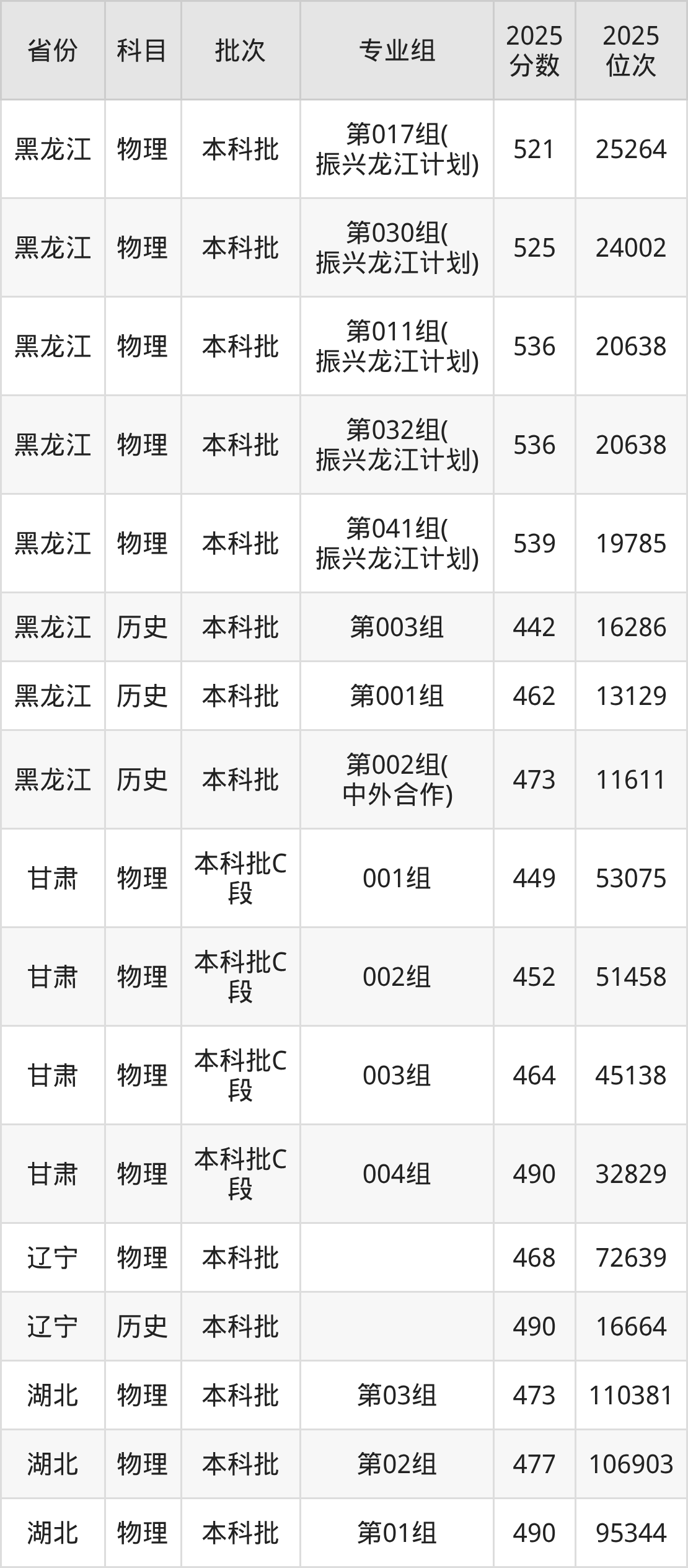 黑龙江八一农垦大学第004组:2025年投档录取最低分为503分,录取最低位次为25490名。