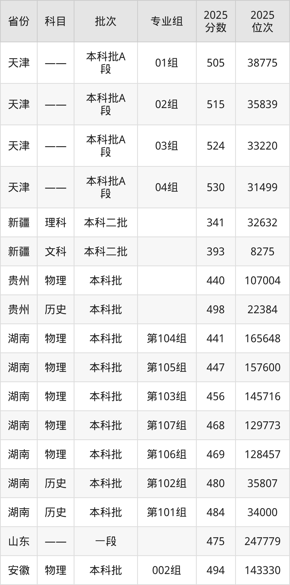 2025年投档录取最低分为393分,录取最低位次为8275名。
