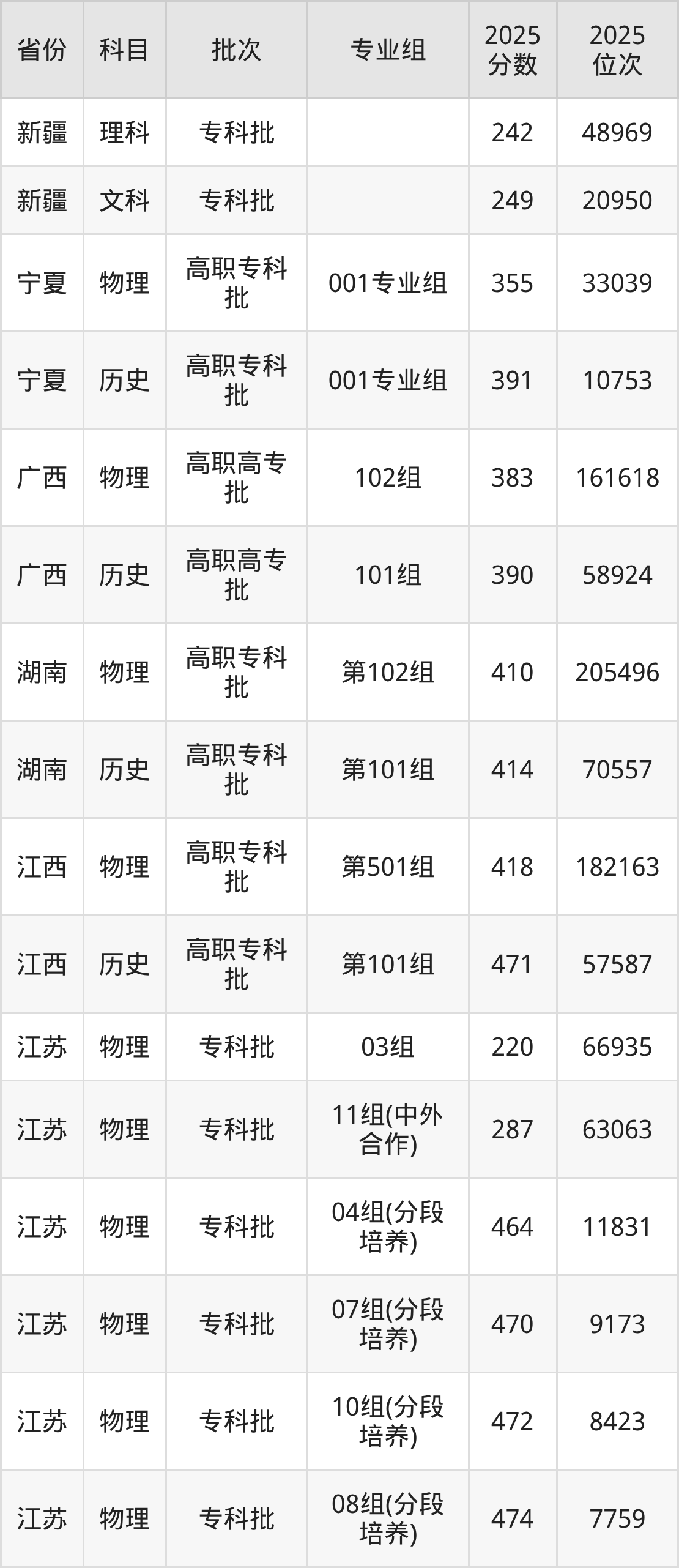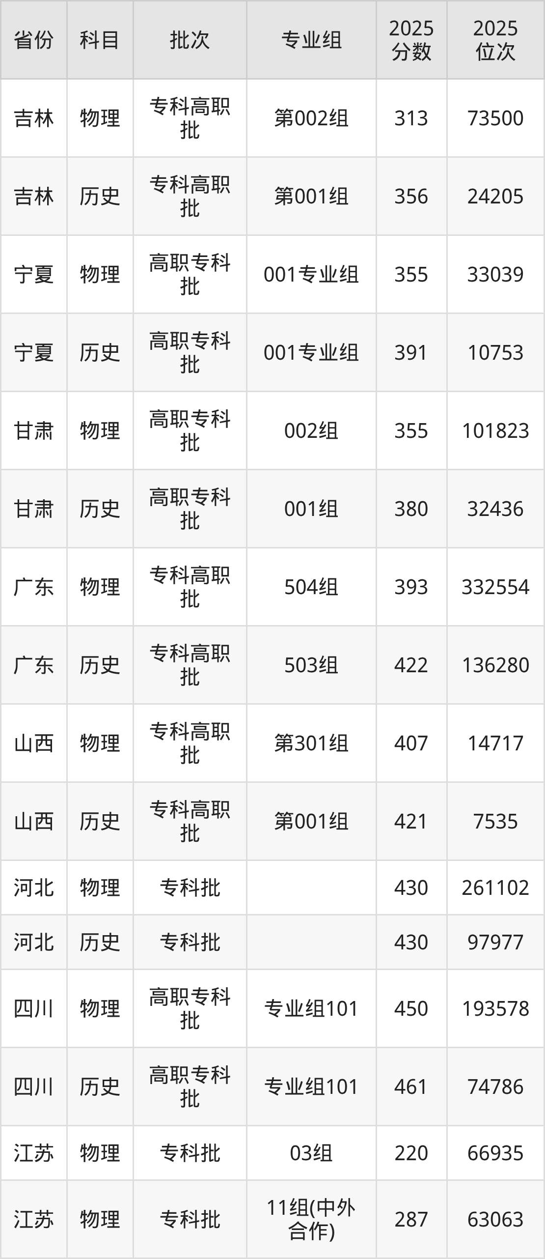 下面是2025年徐州工业职业技术学院全国录取分数线一览表,请查阅。