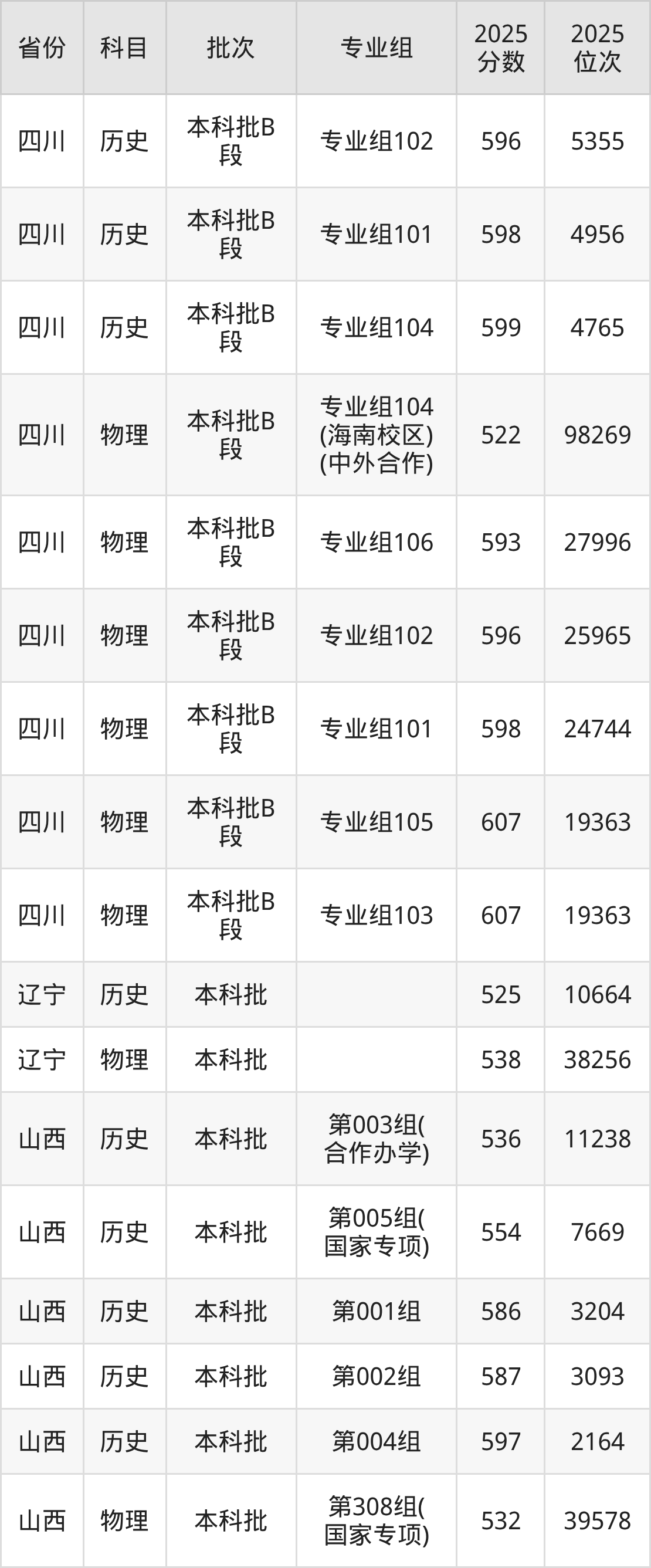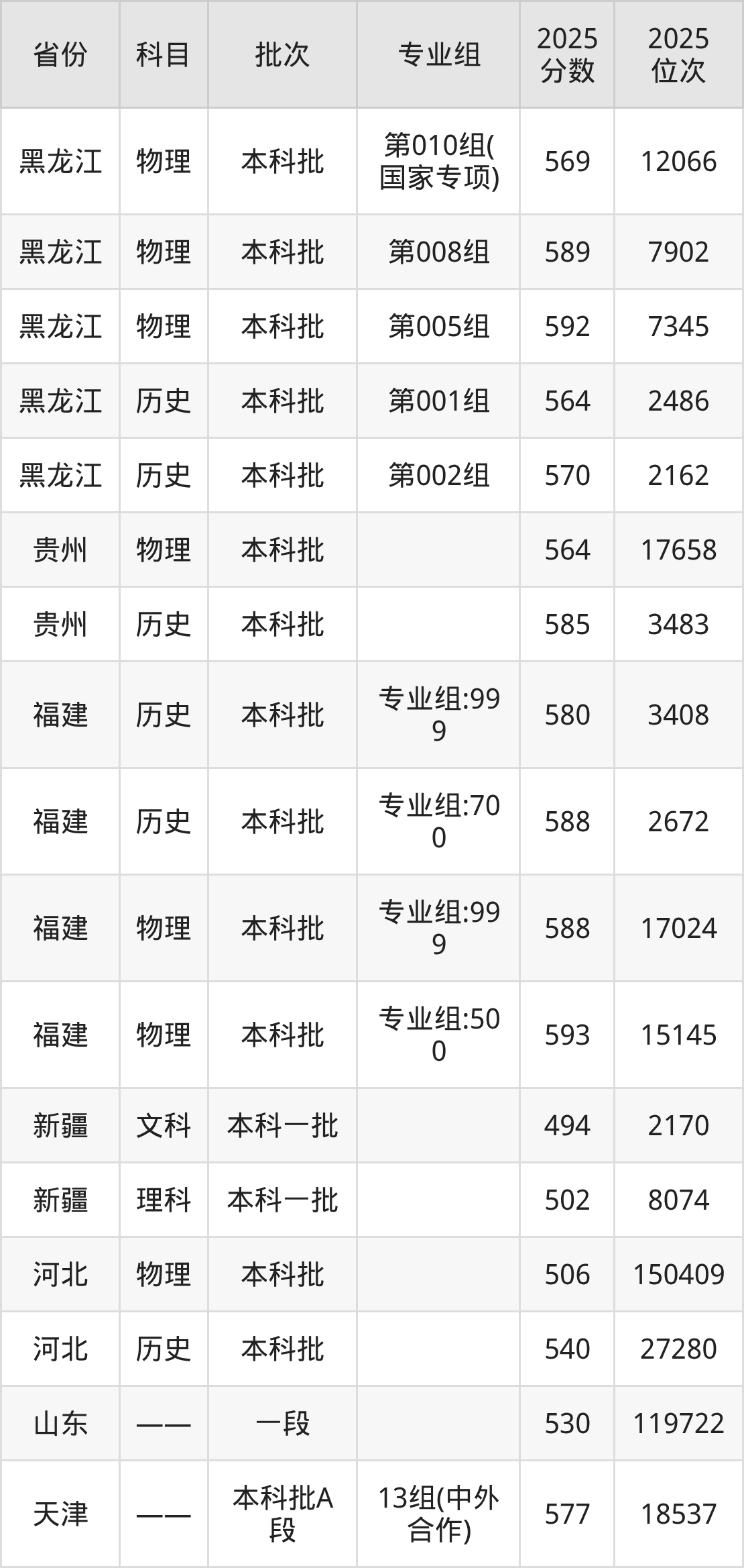 2025年投档录取最低分为564分,录取最低位次为17658名。