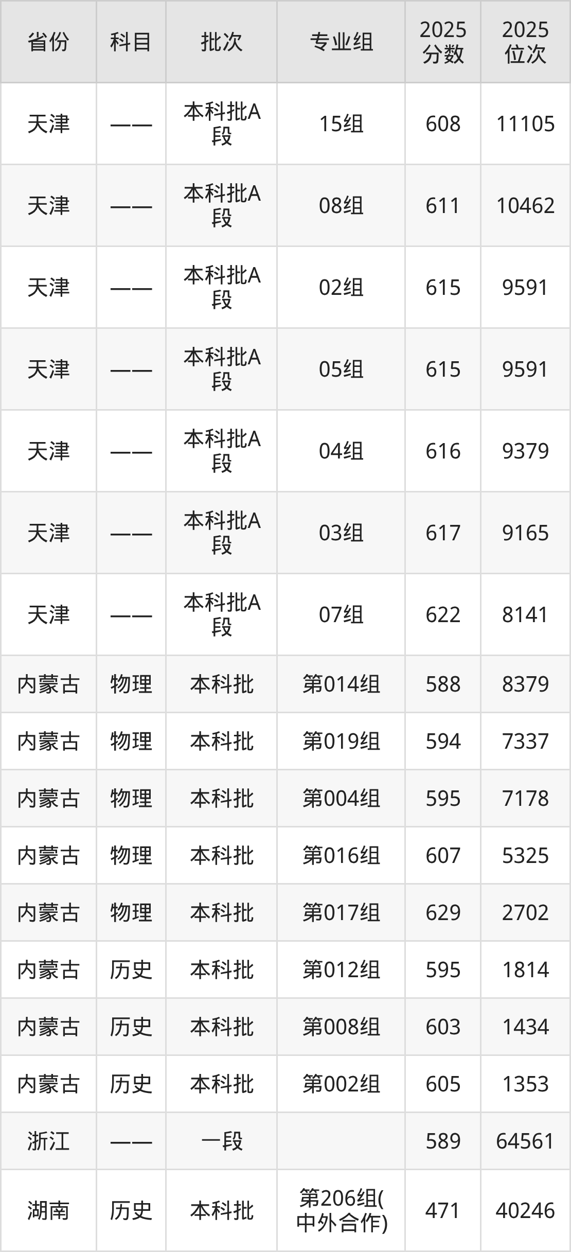 2025年投档录取最低分为502分,录取最低位次为8074名。
