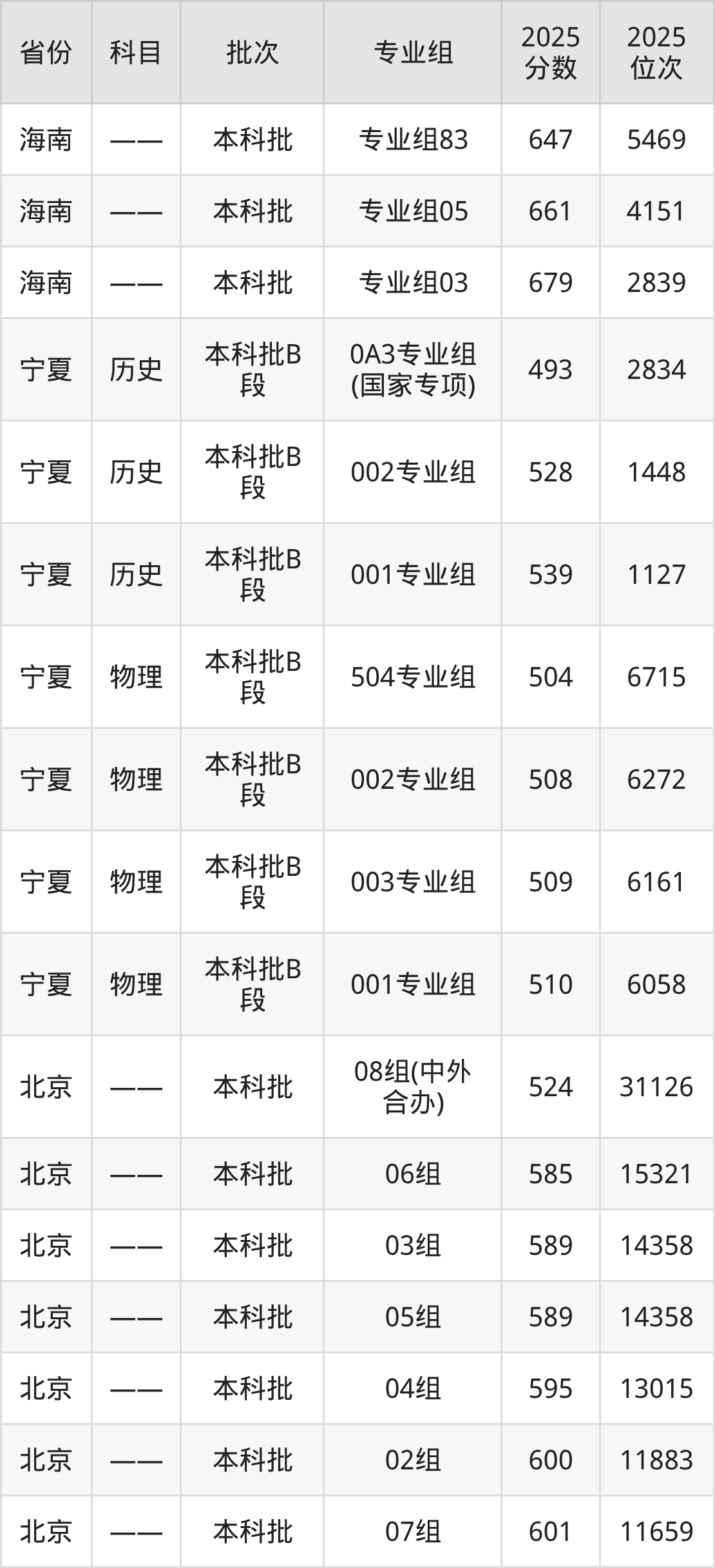 下面是2025年北京体育大学全国录取分数线一览表,请查阅。