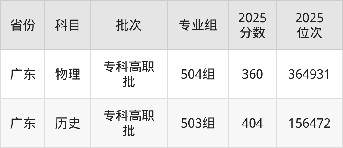 普通类专科物理类最低360分,专科历史类最低404分