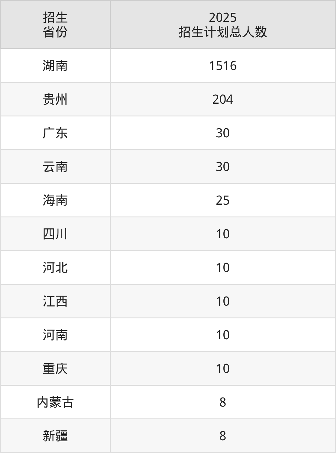 2025年怀化职业技术学院面向全国12个省市开展专科招生;招生专业共28个,招生人数共1871人。2025年在湖南省招生计划总人数是1516人,其中,怀化职业技术学院在湖南省招生人数最多的是现代农业技术。怀化职业技术学院在各省具体招生人数情况如下表。