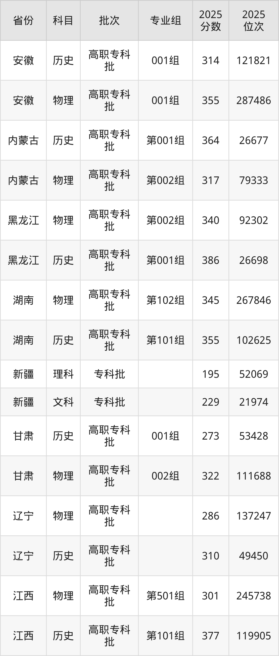 下面是2025年辽宁工程职业学院全国录取分数线一览表,请查阅。