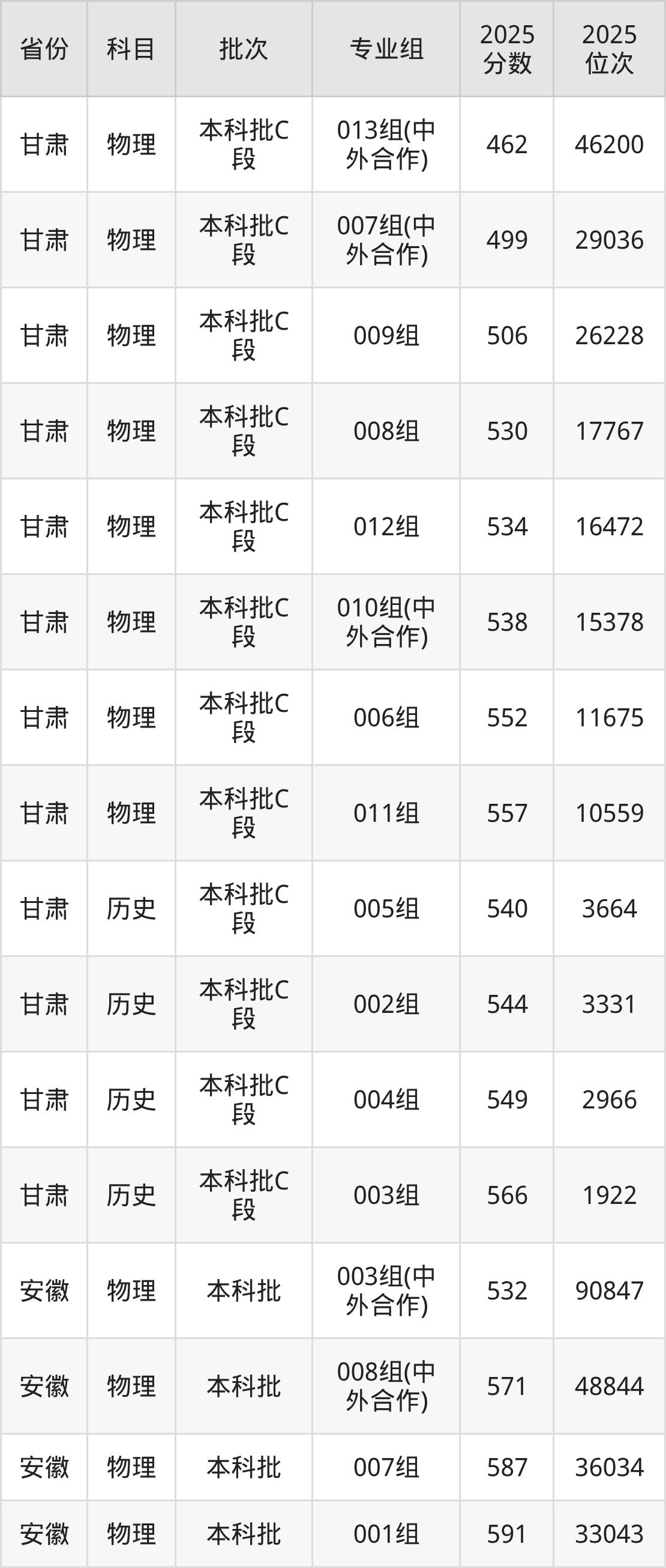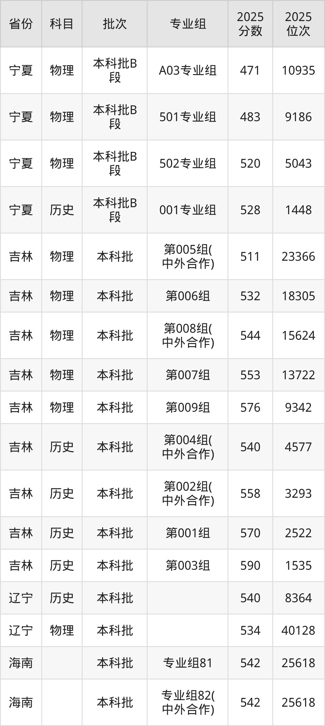 海南大学010专业组(中外合作办学):2025年投档录取最低分为538分,录取最低位次为15378名。