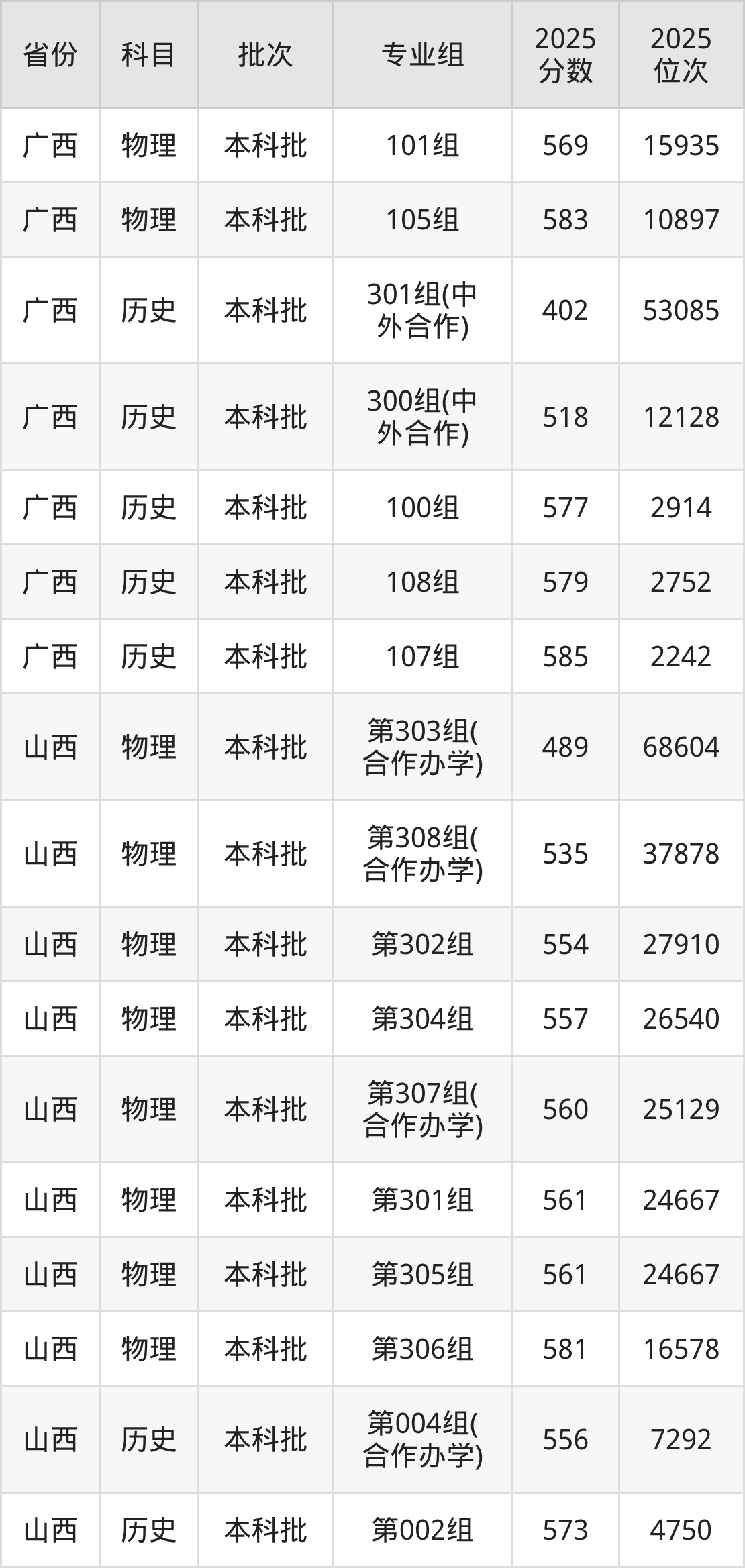 海南大学301组(中外合作):2025年投档录取最低分为402分,录取最低位次为53085名。