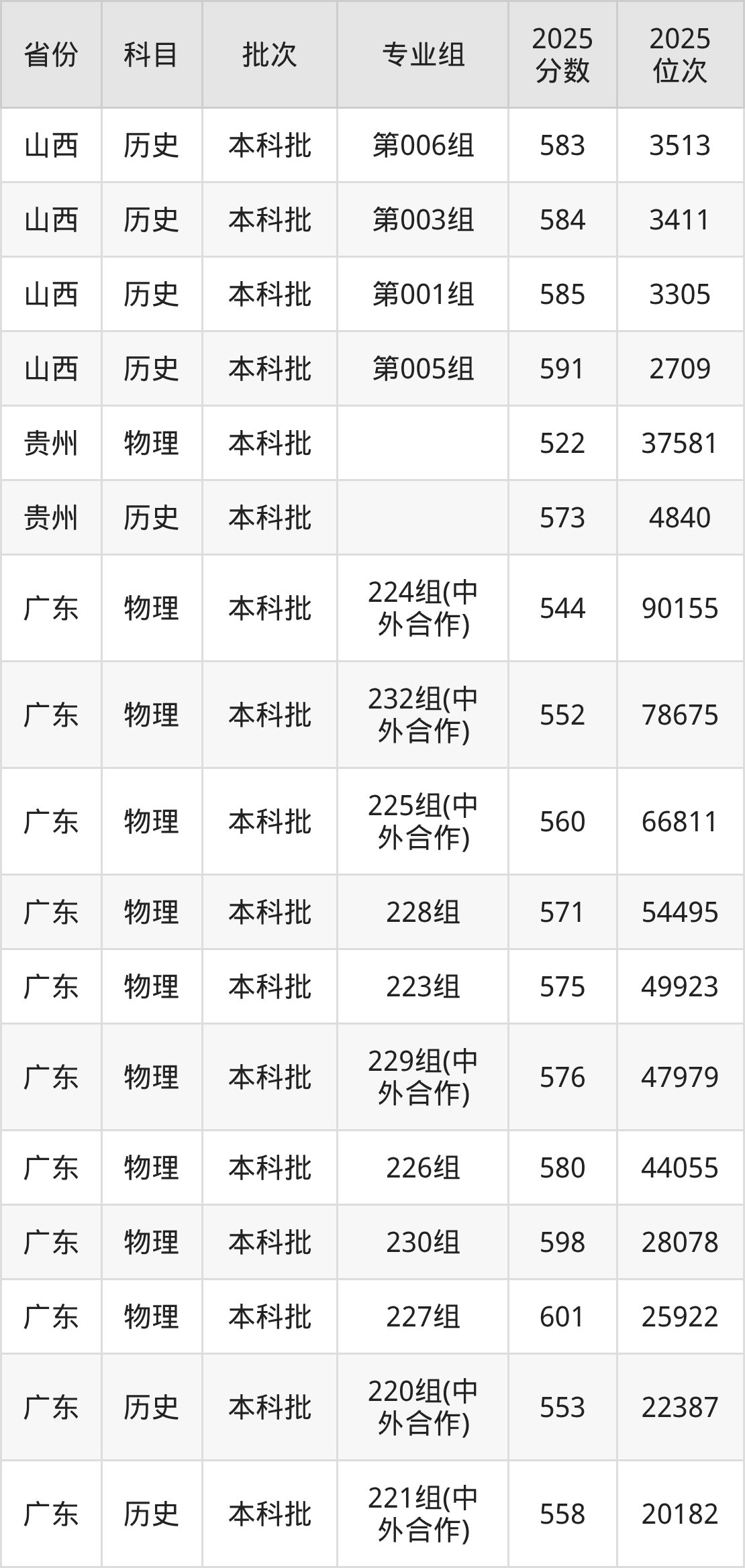 2025年投档录取最低分为522分,录取最低位次为37581名。