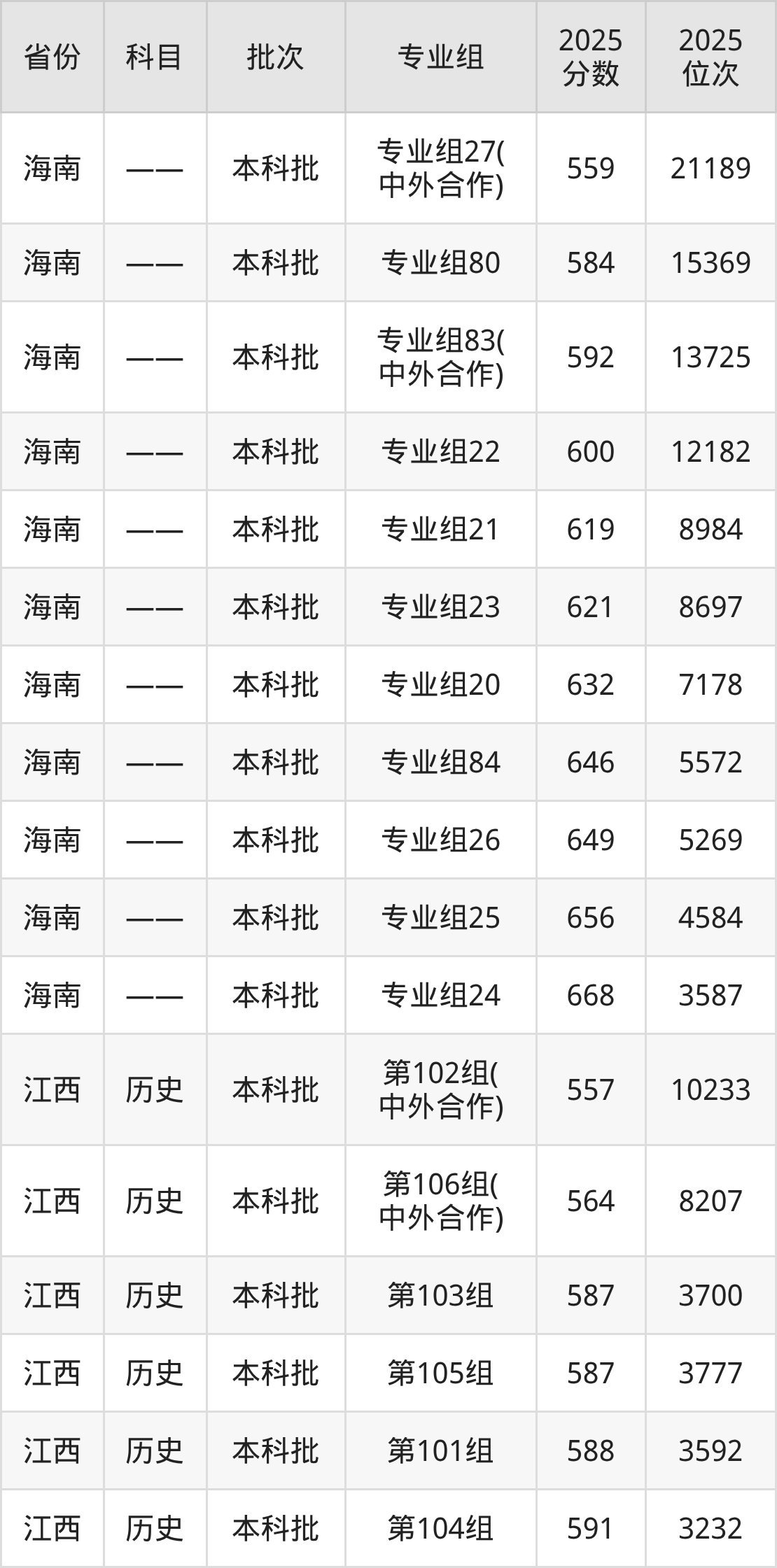 海南大学第010组:2025年投档录取最低分为557分,录取最低位次为14998名。