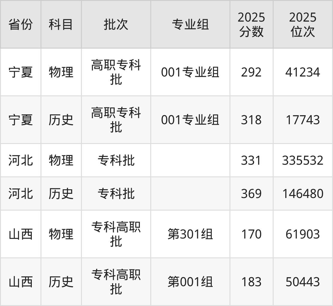 西安高新科技职业学院001专业组:2025年投档录取最低分为174分,录取最低位次为56931名。