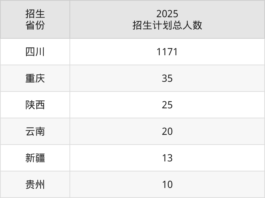 2025年成都职业技术学院面向全国6个省市开展专科招生;招生专业共32个,招生人数共1274人。2025年在四川省招生计划总人数是1171人,其中,成都职业技术学院在四川省招生人数最多的是工程造价。成都职业技术学院在各省具体招生人数情况如下表。