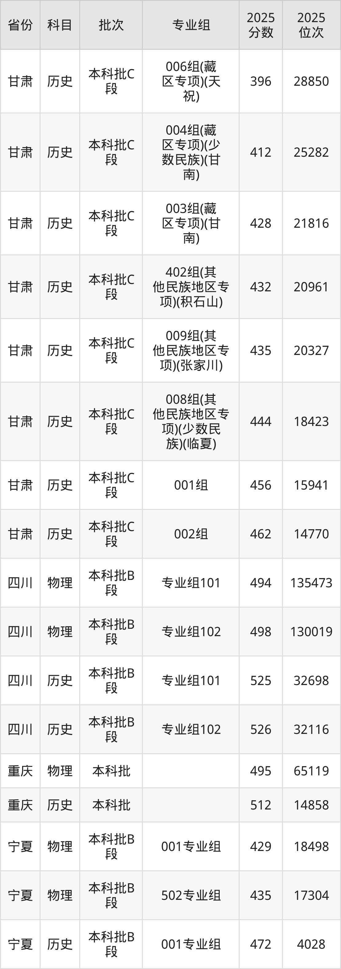 陇南师范学院019专业组(藏区专项)(加试藏语文)(甘南):2025年投档录取最低分为363分,录取最低位次为98627名。
