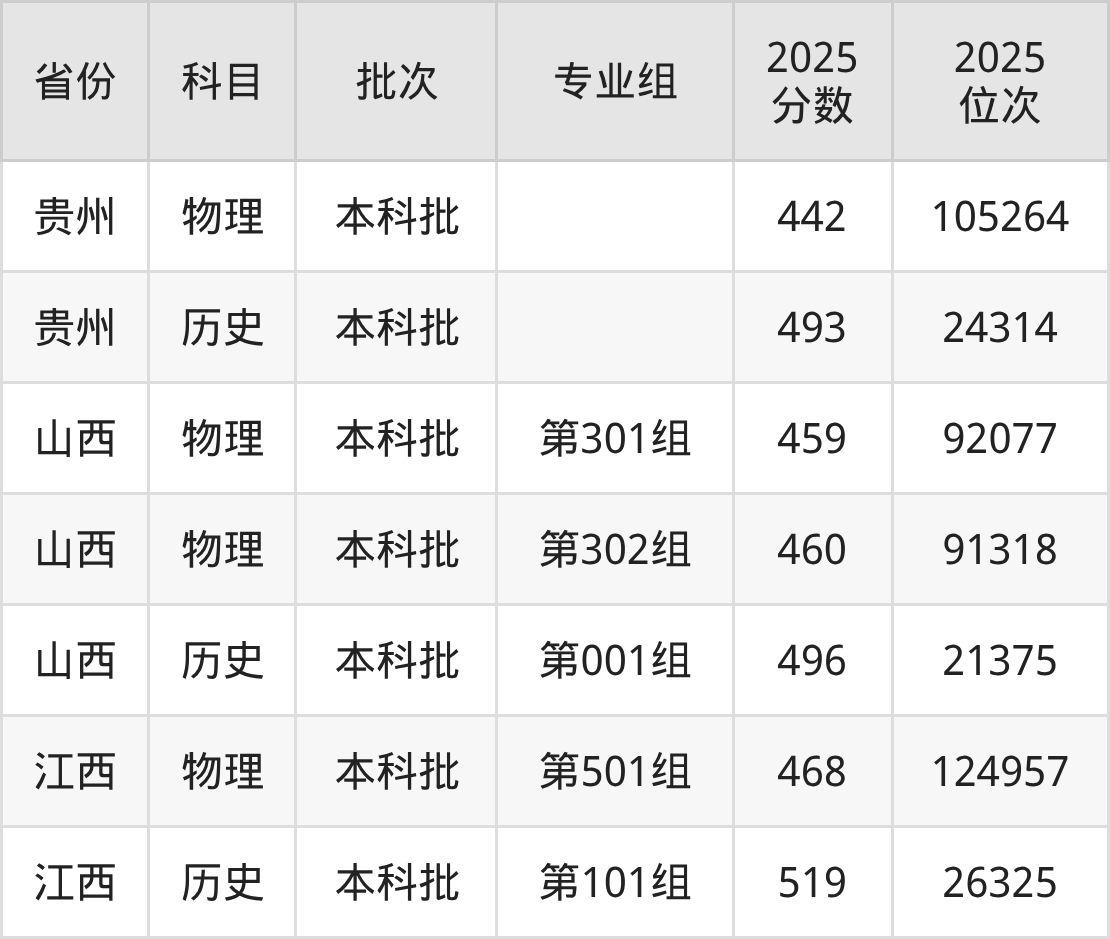 2025年投档录取最低分为493分,录取最低位次为24314名。