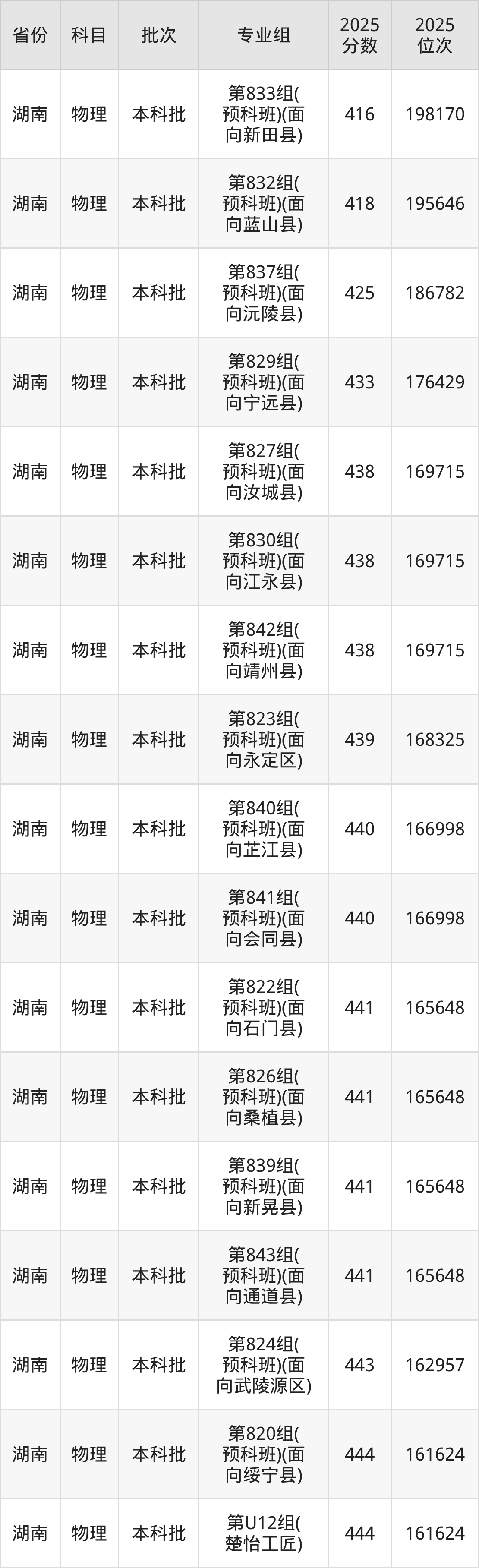湖南科技学院第832组(少数民族预科班)(面向蓝山县):2025年投档录取最低分为418分,录取最低位次为195646名。