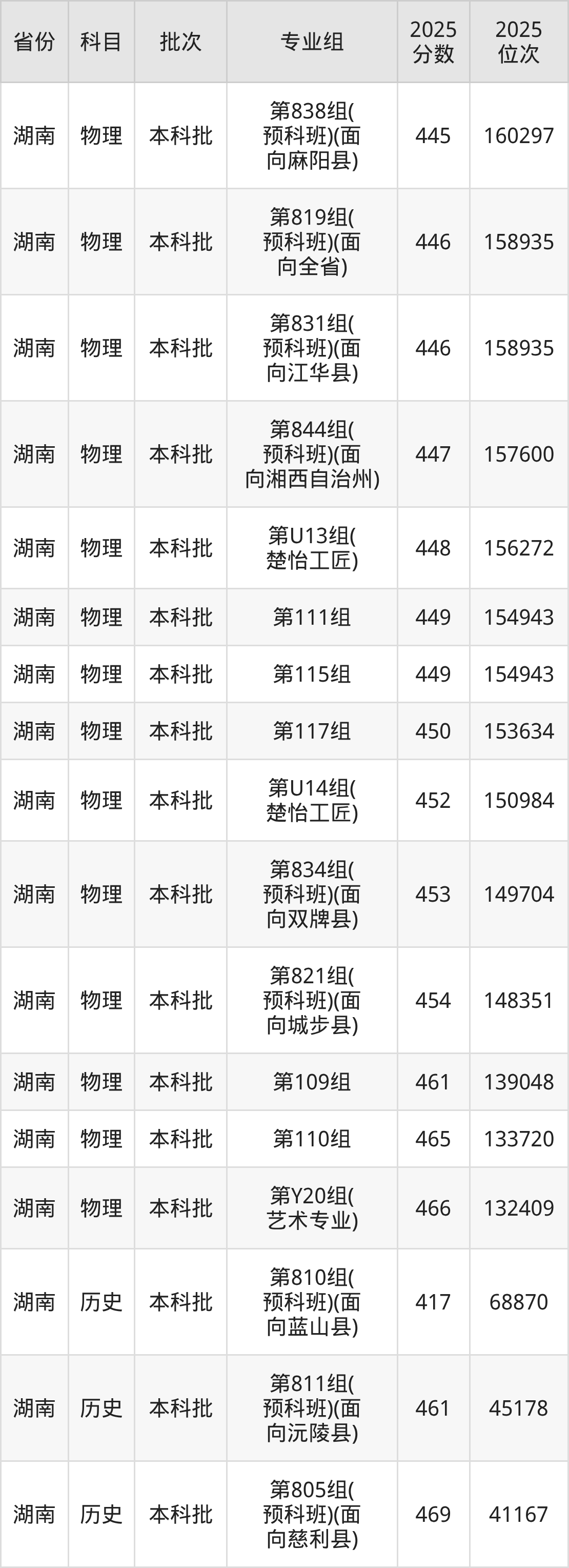 下面是2025年湖南科技学院全国录取分数线一览表,请查阅。