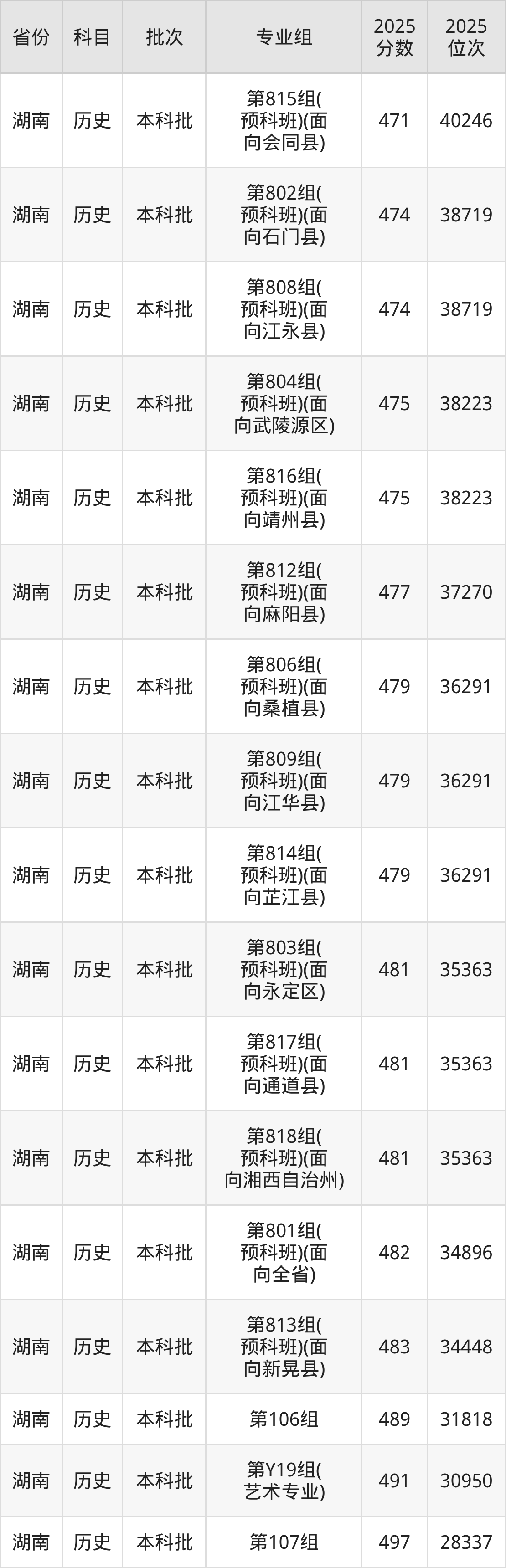 湖南科技学院第804组(少数民族预科班)(面向武陵源区):2025年投档录取最低分为475分,录取最低位次为38223名。