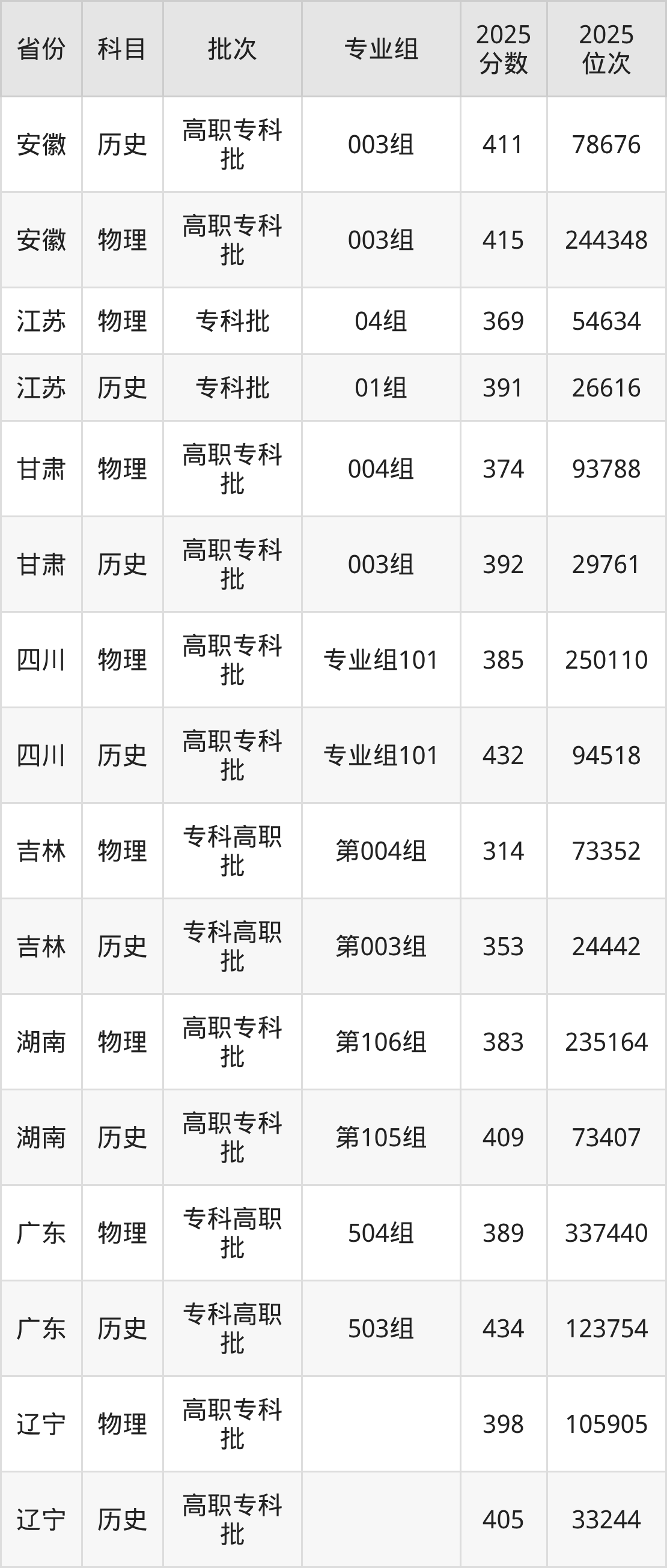 武汉交通职业学院003专业组:2025年投档录取最低分为329分,录取最低位次为37069名。