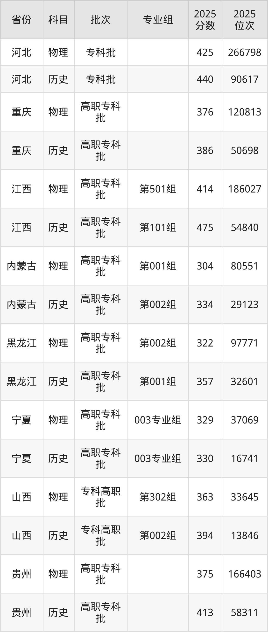 下面是2025年武汉交通职业学院全国录取分数线一览表,请查阅。