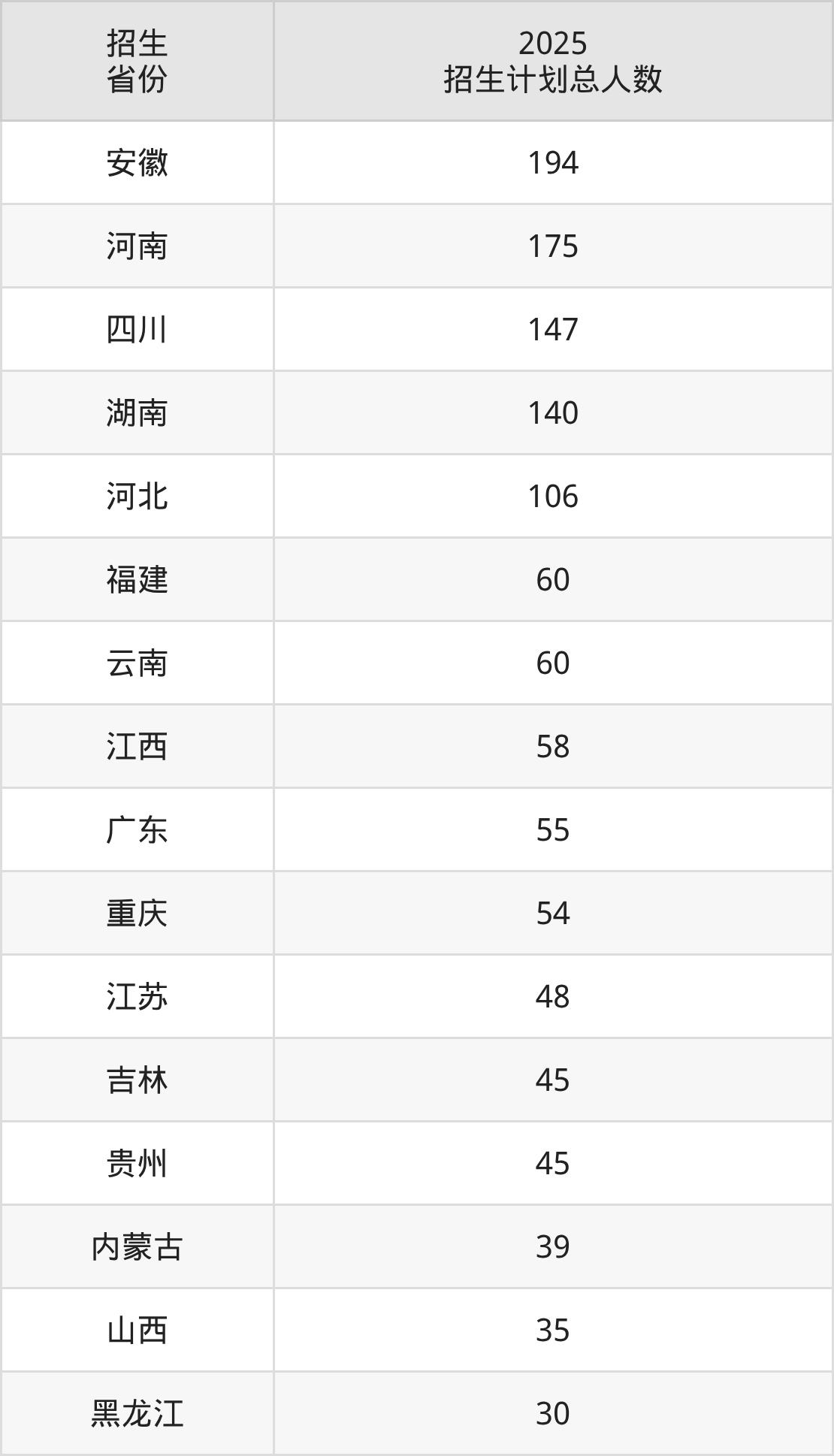 2025年武汉交通职业学院面向全国23个省市开展专科招生;招生专业共39个,招生人数共1421人。武汉交通职业学院在各省具体招生人数情况如下表。