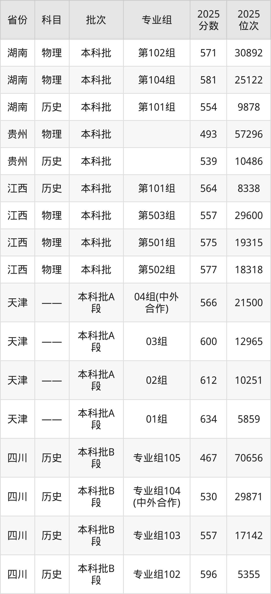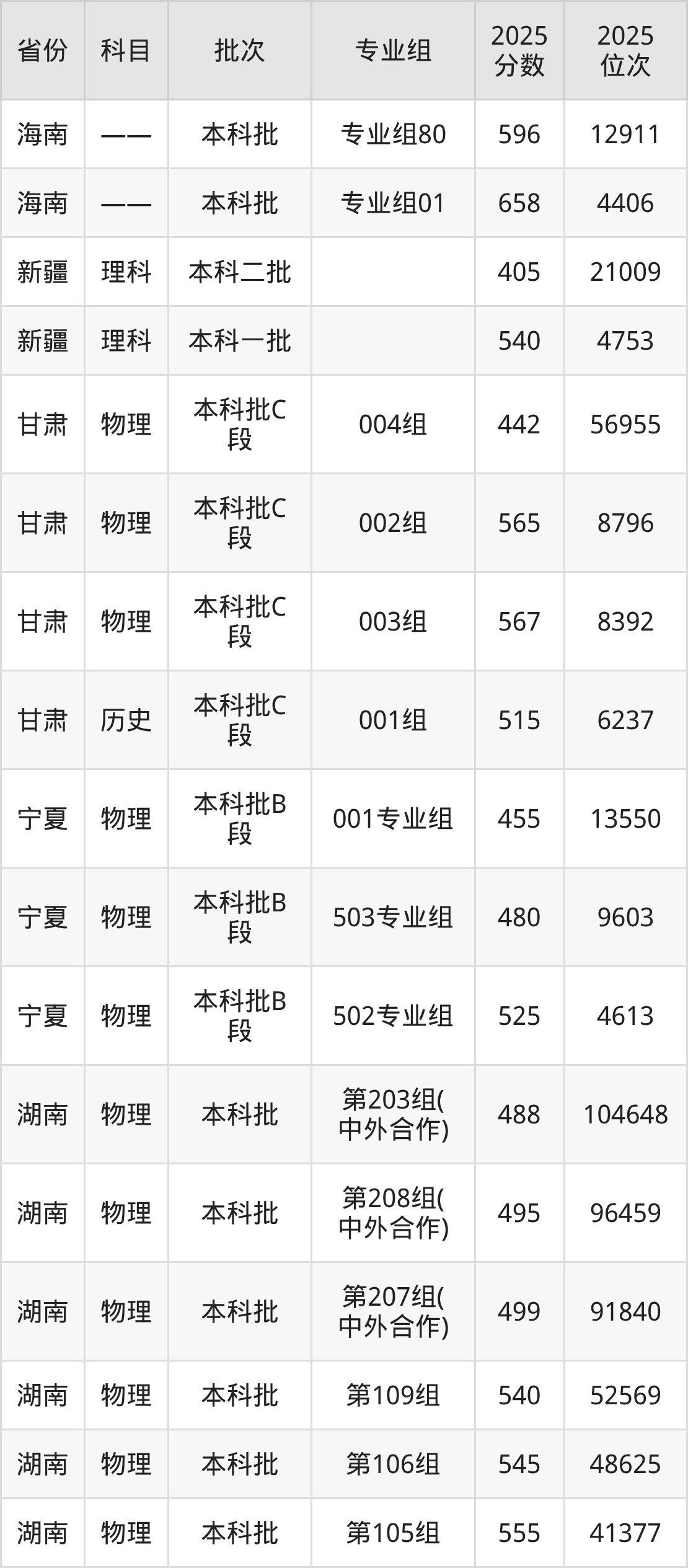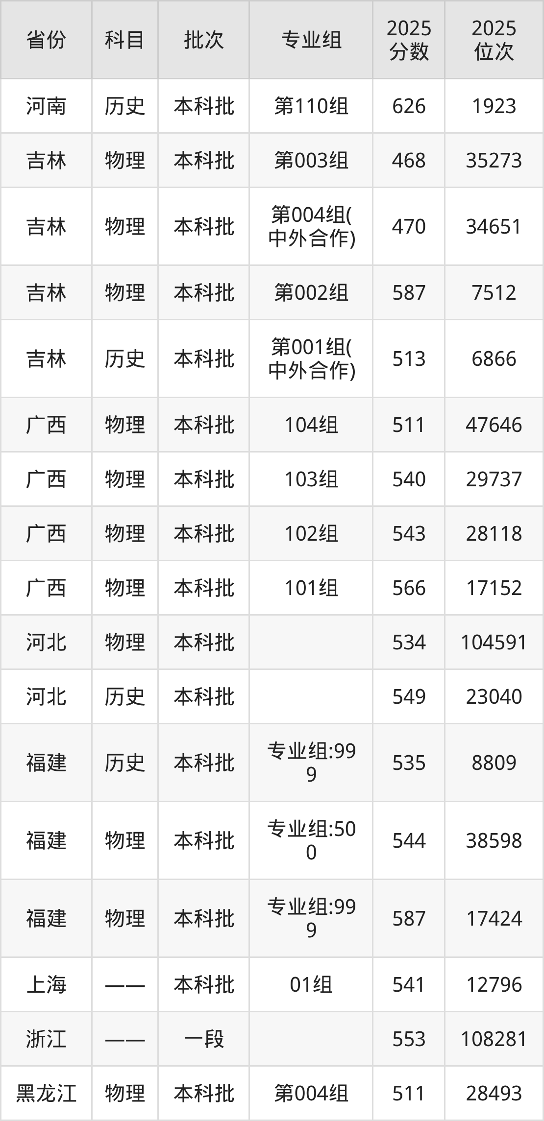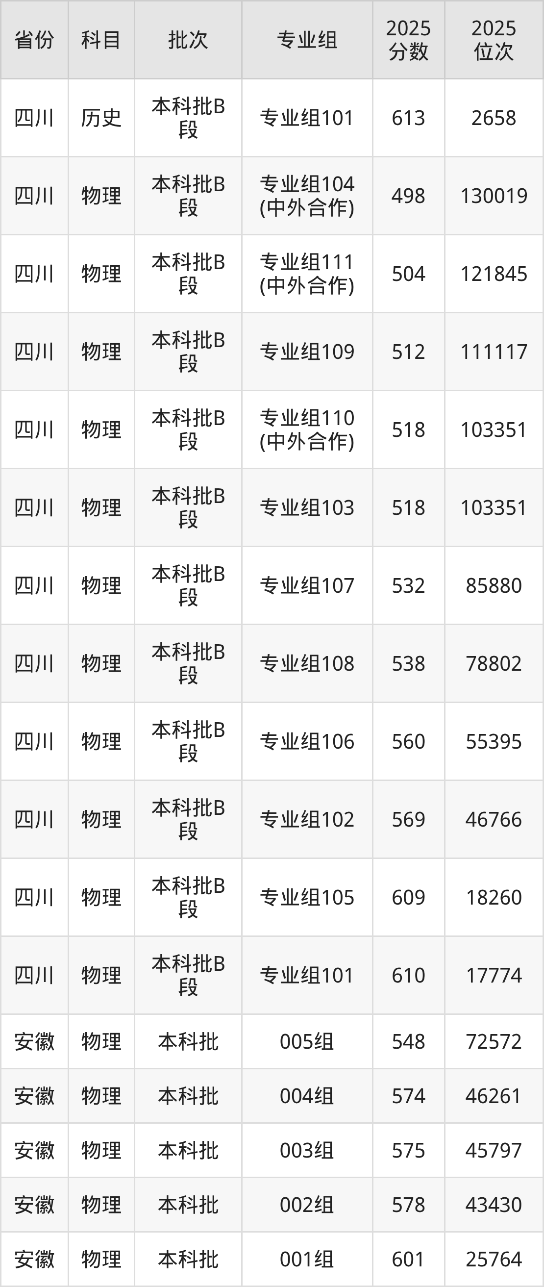 2025年在本科物理类进行招生,各专业组分数线详情如下: