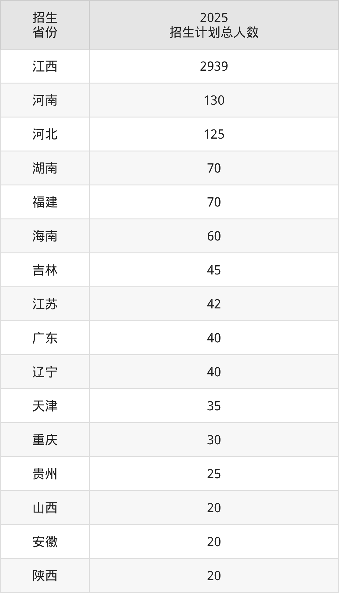 2025年江西航空职业技术学院面向全国23个省市开展专科招生;招生专业共33个,招生人数共3796人。2025年在江西省招生计划总人数是2939人,其中,江西航空职业技术学院在江西省招生人数最多的是无人机应用技术。江西航空职业技术学院在各省具体招生人数情况如下表。