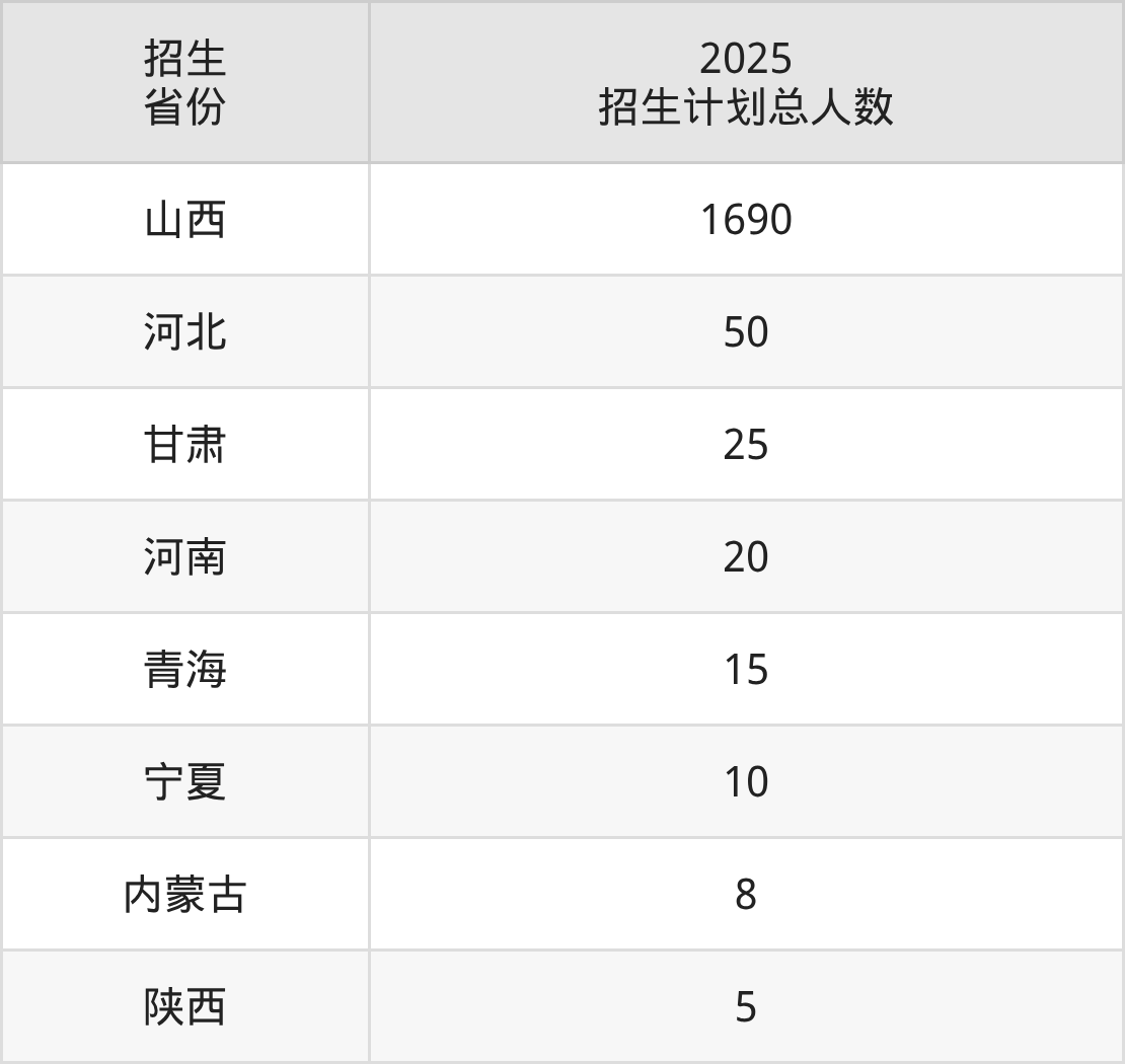 2025年山西水利职业技术学院面向全国8个省市开展专科招生;招生专业共28个,招生人数共1823人。2025年在山西省招生计划总人数是1690人,其中,山西水利职业技术学院在山西省招生人数最多的是机电一体化技术。山西水利职业技术学院在各省具体招生人数情况如下表。