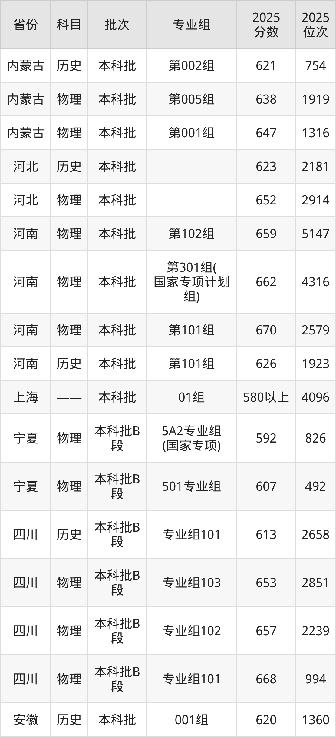 下面是2025年电子科技大学全国录取分数线一览表,请查阅。