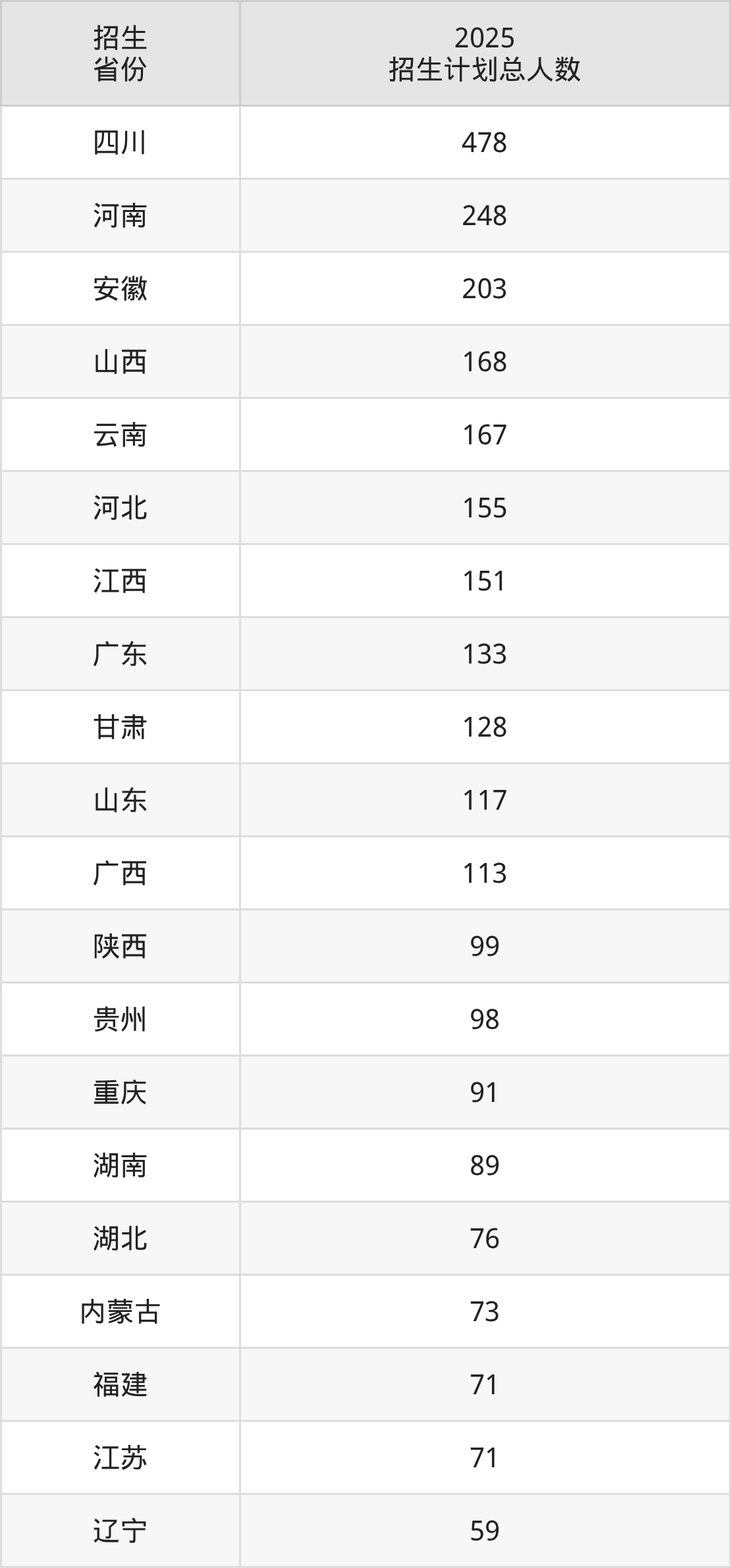 2025年电子科技大学面向全国29个省市开展本科招生;招生专业共24个,招生人数共3033人。2025年在四川省招生计划总人数是478人,其中,电子科技大学在四川省招生人数最多的是电子信息类。电子科技大学在各省具体招生人数情况如下表。