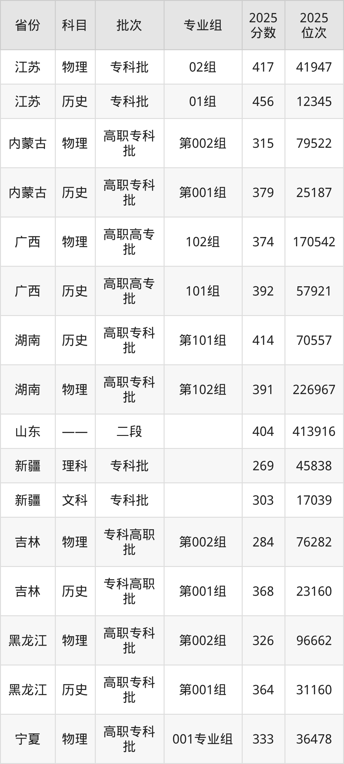 下面是2025年江西财经职业学院全国录取分数线一览表,请查阅。