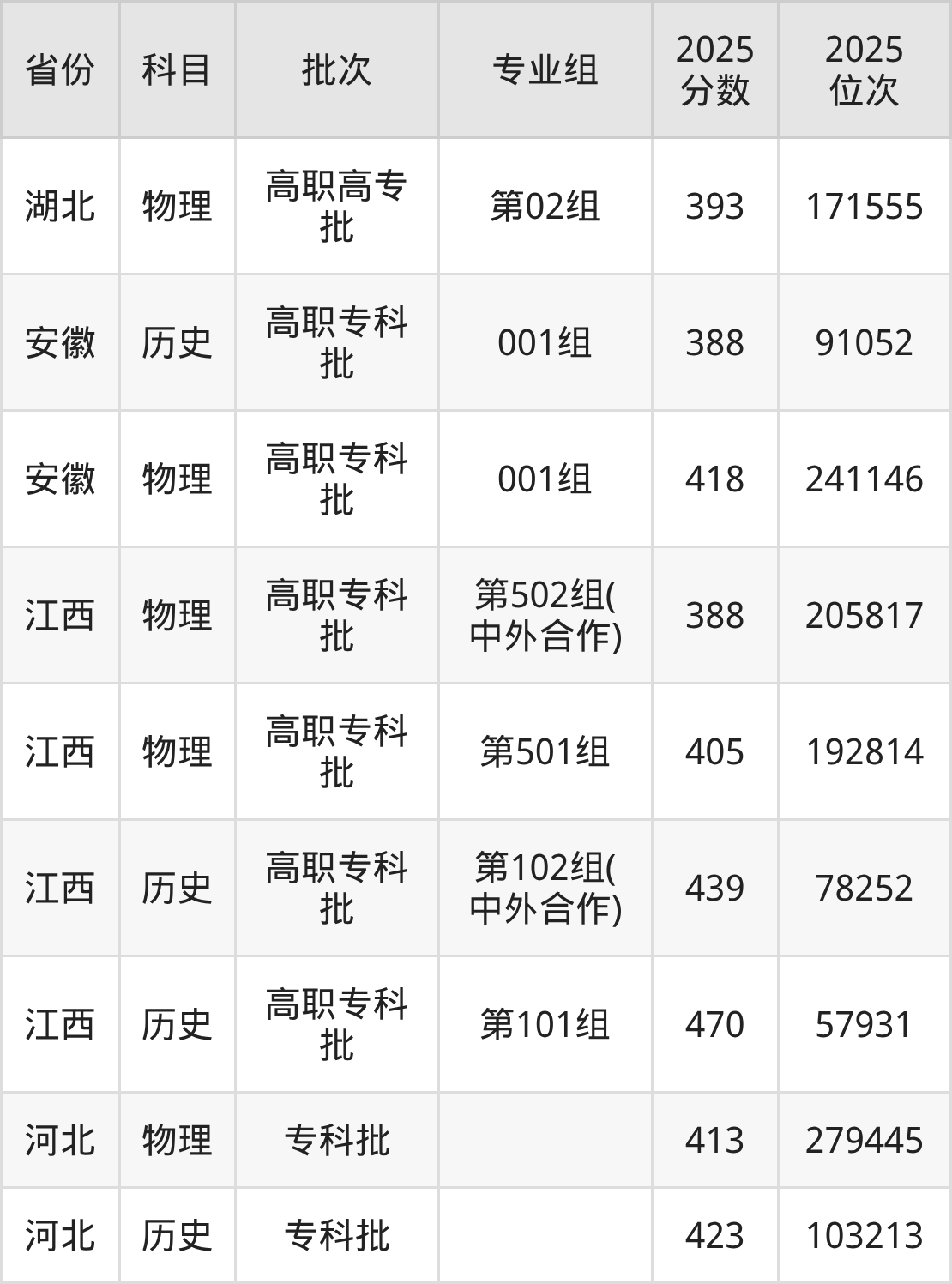 江西财经职业学院第502组(中外合作):2025年投档录取最低分为388分,录取最低位次为205817名。